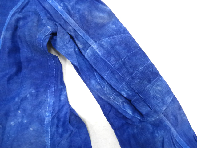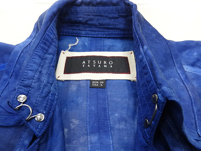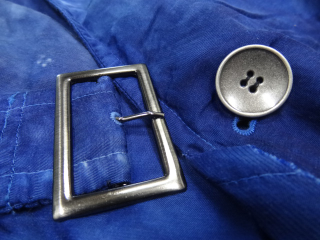 ATSURO TAYAMA アツロウタヤマ インディゴ タイダイ ブリーチ ドレープ トレンチ コート メタル ボタン エルボー パッチ ユニセックス レア