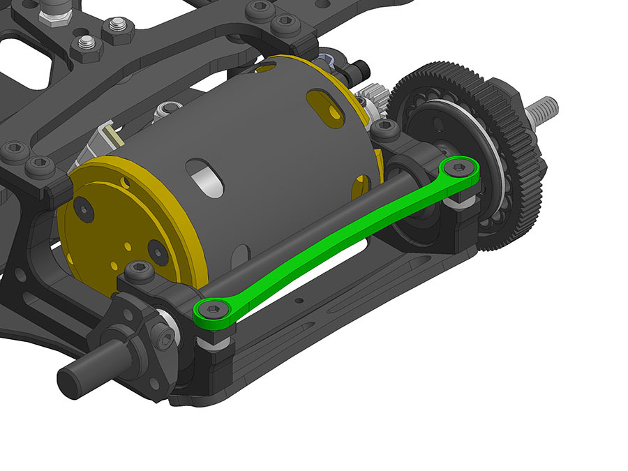 モーターマウント上部を連結し、リヤ周りの剛性を向上させるカーボン製のタワーバーです。