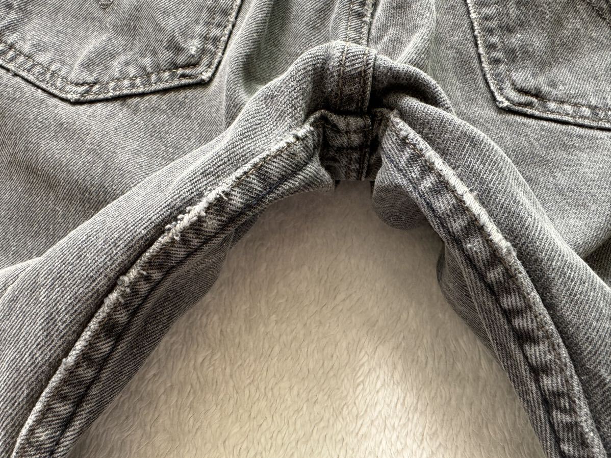・採寸:ウエスト 41cm 股上 30cm 股下 82cm(折り返し 1、5cm) ワタリ幅(股下15センチの横幅) 26、7cm 裾幅 20、2cm 全長 107、5cm