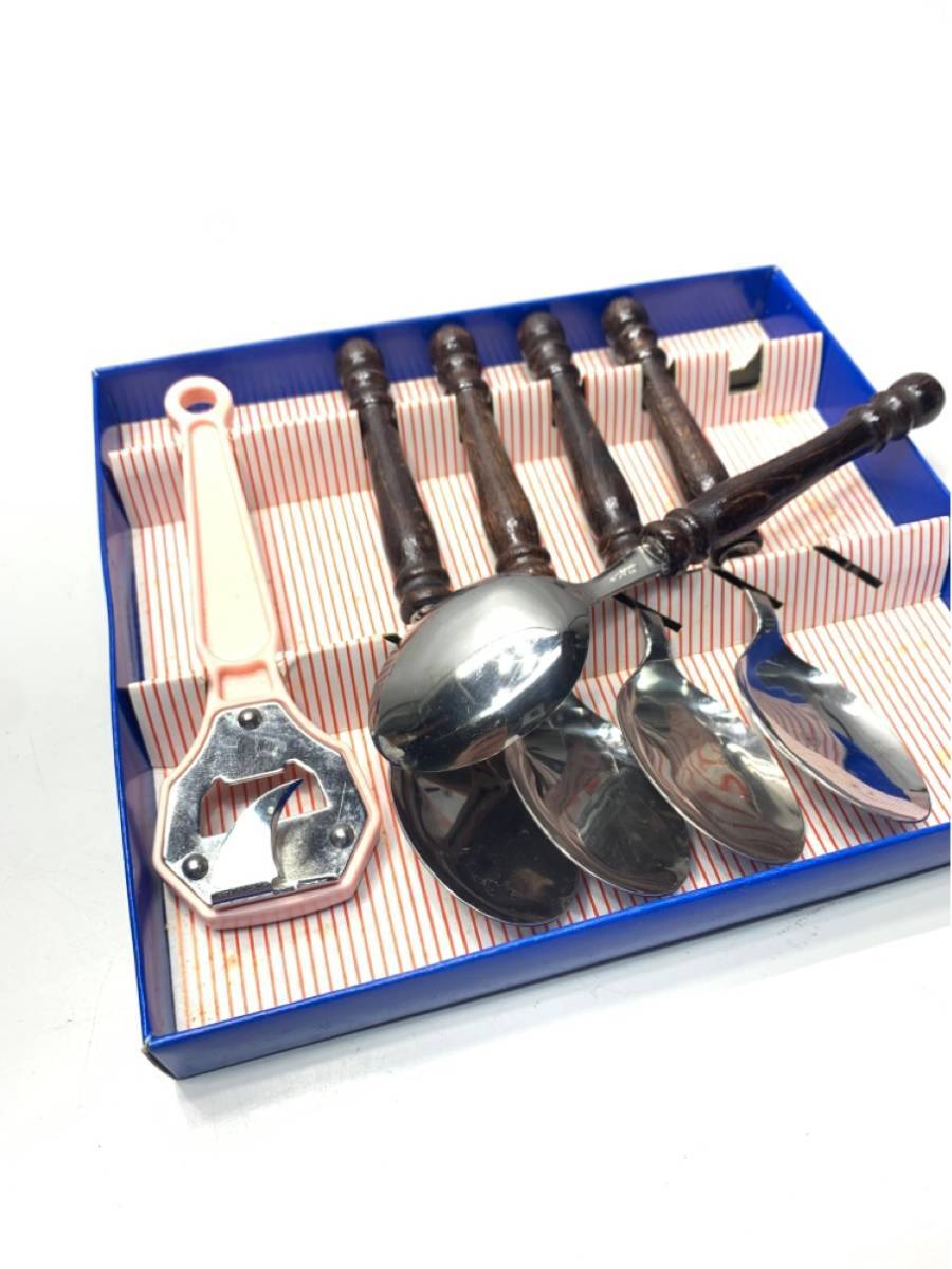 未使用 アンティークスプーンセット 5本  栓抜き ウッド 2821 00