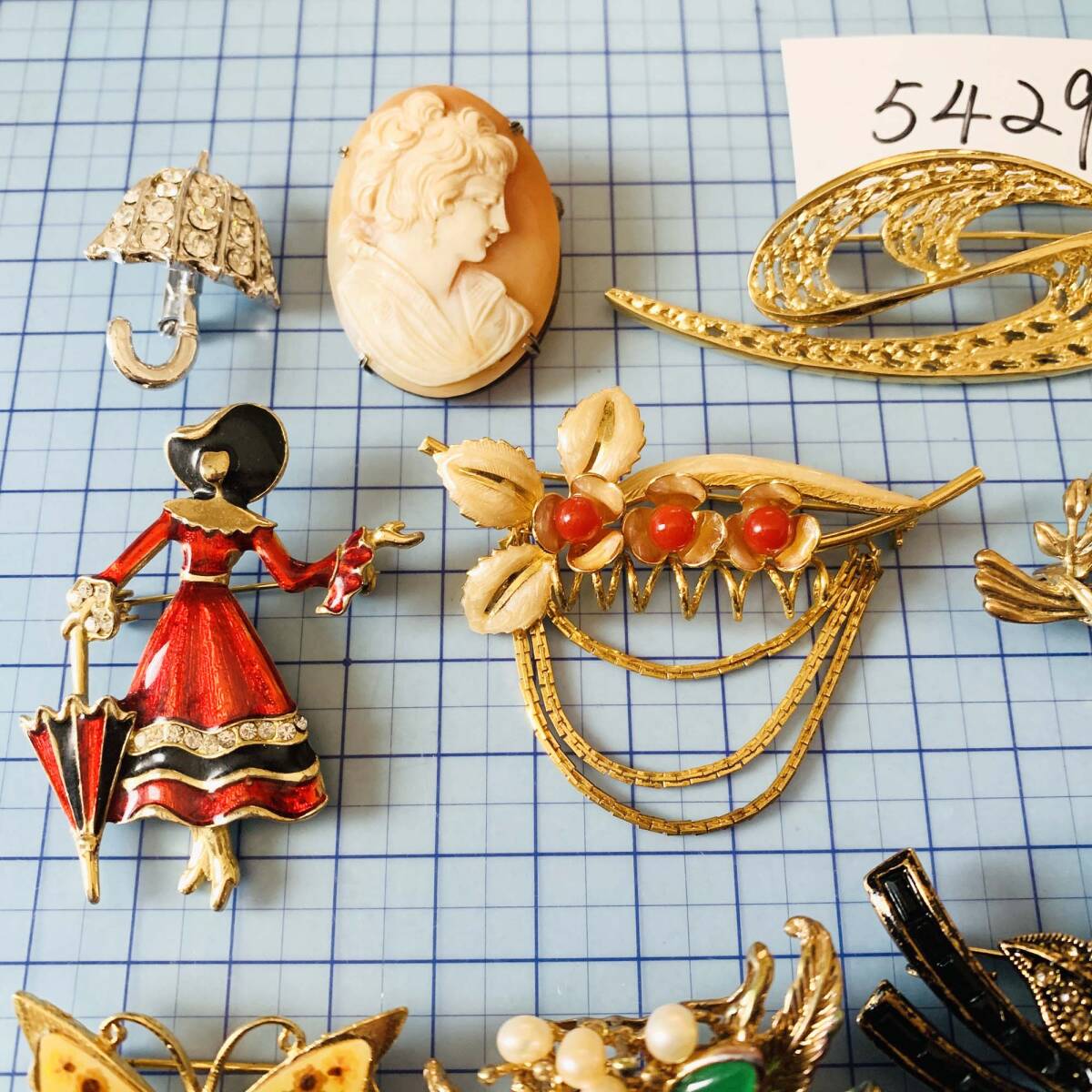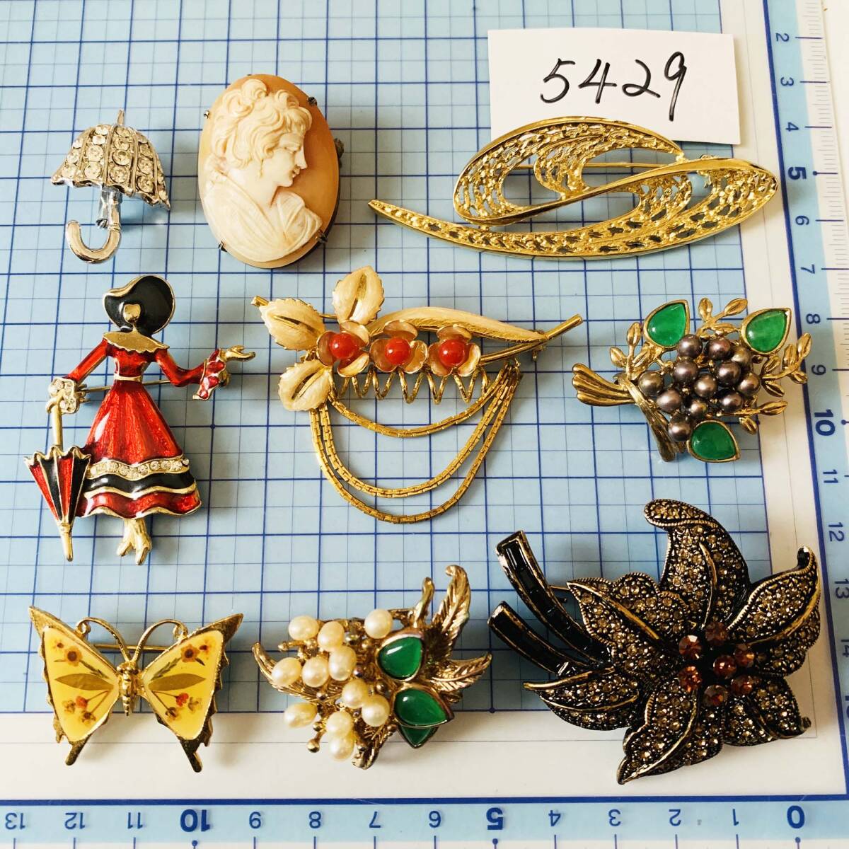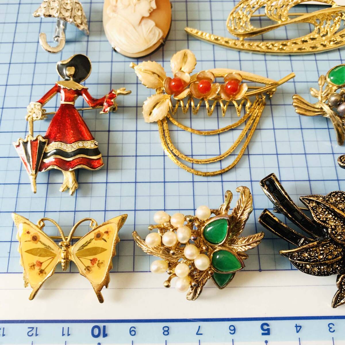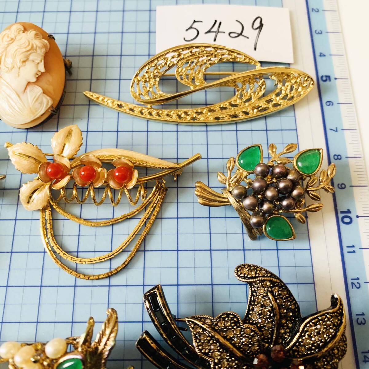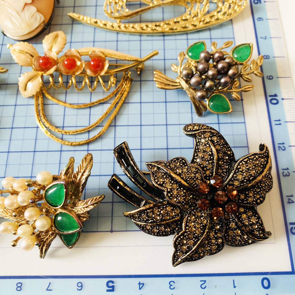 各種ブローチ BALMAIN SILVER Rom A刻印あり 天然翡翠 淡水パール 貝シェルCAMEOなど お得9点セット おまとめ 大量 No.5429