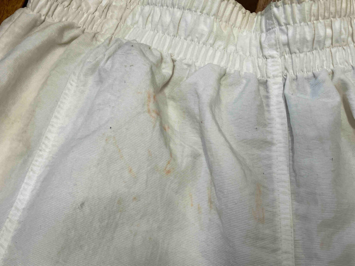 | 〔ボトム〕ウエスト 約76cm、股上 約34cm、股下 約10cm、裾幅 約32cm 【状態】 全体的に汚れシミあり、使用感有り |