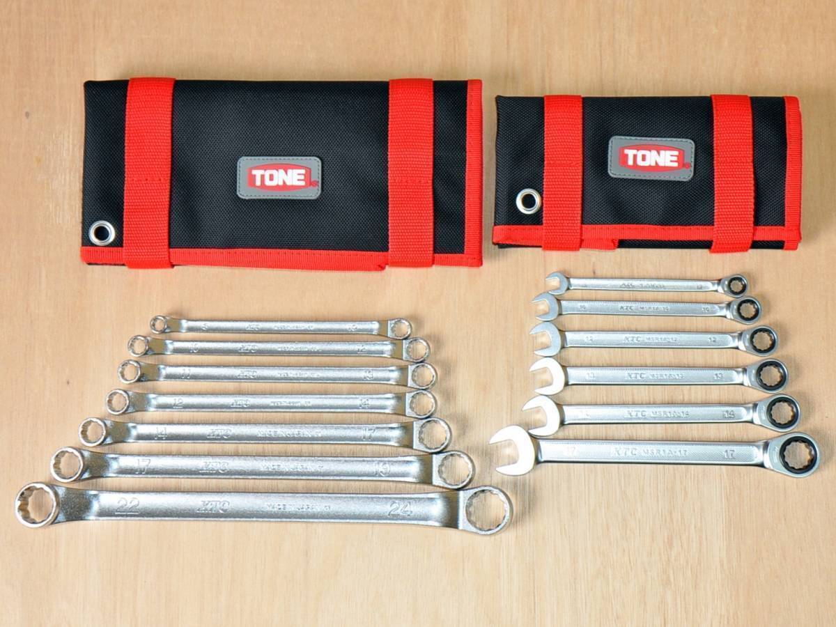 | ★TONE 布袋 BNRM7L 大 BNRM7S 小 KTC ロング メガネレンチ 7本 ラチェットコンビレンチ 6本★トネ ツールバック MSR1A | |