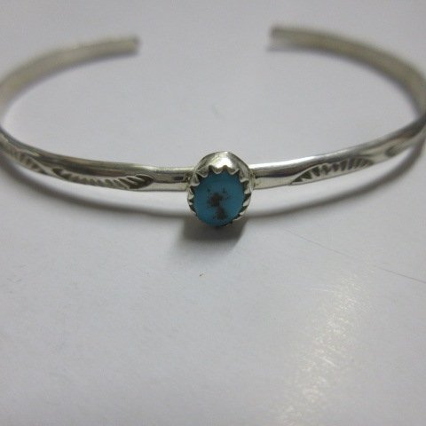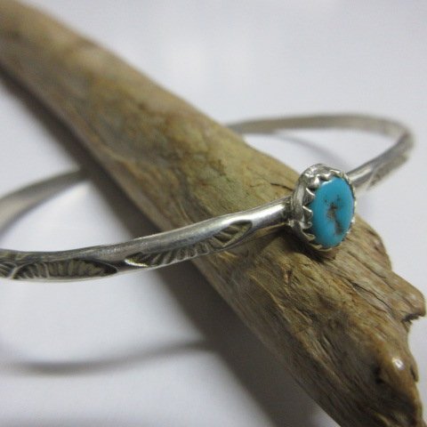 ターコイズ  レディースwss 小さいサイズ インディアン シルバー バングル  ナバホ族 スタンプ Indian Silver g1059