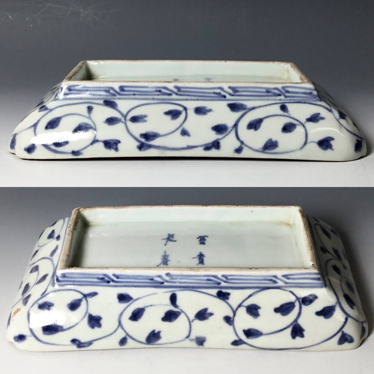 古伊万里:染錦江戸中期末~後期長皿大振松竹梅白抜蛸唐草平向付④ 江戸の豪華な器で御馳走を少しずつ 染錦長皿、平向付大振、 三種のご馳走を少しずつ盛り付けて... 目が美味しさでいっぱいに!なります。 少し大振、深さのある平向付です。 長皿に数種の御馳走を、最適かと... (文化文政期の色絵は落ち着いた色彩です) (大振長皿は御馳走を更に美味しく彩ります) 染付をベースに見込は竹林、縁文様に窓絵四ヶ所、 白抜唐草を添えて、松梅を色絵で散らす。 唐草裏文様と高台文様、定番の裏銘、 江戸中期末~文化文政期の上手長皿です。 単品販売に変更しました。 また、残り2枚有、同時に出品しています。 併せてご覧下さい。 インスタグラムを始めました。 Instagramでも販売しています。 時代 江戸中期末〜後期、文化文政期前後、1780-1800年代前後 口径 21.5㎝x11.4㎝(共に最大) 全高 4.1㎝(3.9) 状態 ほぼ完品、画像参照 (金縁に針穴程の金縁アタリ3ヶ所、ムシクイレベル、目立たず) 傷ではありませんがご確認いただきたい詳細: 金縁濃淡斑多少、目立たず、画像参照) 金縁に極小ムシクイ・凹凸・釉切・シワ多少 (かろうじて爪にかかる程度、許容範囲、画像参照) 呉須濃淡滲散・色濃淡斑・色スレ多少、画像参照 (色スレは金彩・朱の一部、滲気味は呉須の一部) 極小灰振・釉切・クッツキ・釉下シワ・凹凸多少 手前中央畳付がつく状態で左右前後に微かな隙有 (強く左右を押し微揺れ、それなりに安定、画像参照) (普通のランチョンマット使用で解消する程度) :::::::::::::::::::::::::::::::::::::::::: 江戸初期に日本で初めて磁器が生産され伊万里と呼ばれました。 (1610年代) 江戸時代に作られた伊万里全てを古伊万里と呼ぶことが多いです。 (現在の佐賀県有田周辺で作られ伊万里港から出荷) 1670年前後の伊万里は当時の高級品でした。 殆どの日本人が伊万里の存在さえ知らなかった時代です。 (当時の器は木製、漆器、陶器が主流、一握りの富裕層のみ使用) 1750年前後、伊万里の国外輸出が終了します。 江戸中期後半、国内に販路を広げる為、伊万里では価格の多様化 が始まり、大量生産の時代に向かいます。 江戸後期の伊万里について知っておきたい事 江戸幕府体制に陰りが現れ国が徐々に騒がしくなります。 日本初の磁器生産を果たした伊万里の里、 有田周辺では、文政期に、主な窯場が台風の大火におおわれ、 大きな被害を受けました。 伊万里陶工たちの一部は諸藩に散らばりました。 技術の流失です。その後磁器生産が各地で始まります。 文政期の大火事で有田皿山周辺は焼け野原となりました。 佐賀藩は、窮乏から生まれた近代化への改革を始め復興を遂げ ます。藩の援助もあり、伊万里も復興を果たしました。 輸出の再開が始まり販路が広がります。 藩に残った熟練工たちの技術を生かし、上手伊万里が多く生産 されました。幕末期の銘品は意外に多いです。 九州陶磁文化館の#柴田コレクション にも、追加寄贈された銘品 が多くあります。 最盛期伊万里の技術が、後世に受け継がれた確かな証とし、柴田 氏から多数寄贈されました。 :::::::::::::::::::::::::::::::::: 御入札前にご確認下さい 時代、状態は保証します。 ご返品は落札手数料の問題で不可となります。 お気になる事が御座いましたら、ご入札前に必ずご質問下さい。 追加画像、また追加説明等させて頂きます。 お客様ご利用のパソコン等の色彩問題も考えられますのでご注意下さい。 入札前のお問い合わせは、お電話でも可能です。 お早目にご連絡下さい。宜しくお願い致します。 但し、時代・状態の説明に私共の不備が御座いました場合は、ご返品を お受けします。 商品受領後7日以内にご連絡の上、ご返送ください。 (期間を過ぎると不可となります) 詳細はお問い合わせ下さい。 :::::::::::::::::::::::::::::::::::::::::::::::::::::::::::::::::::::::::::: |
