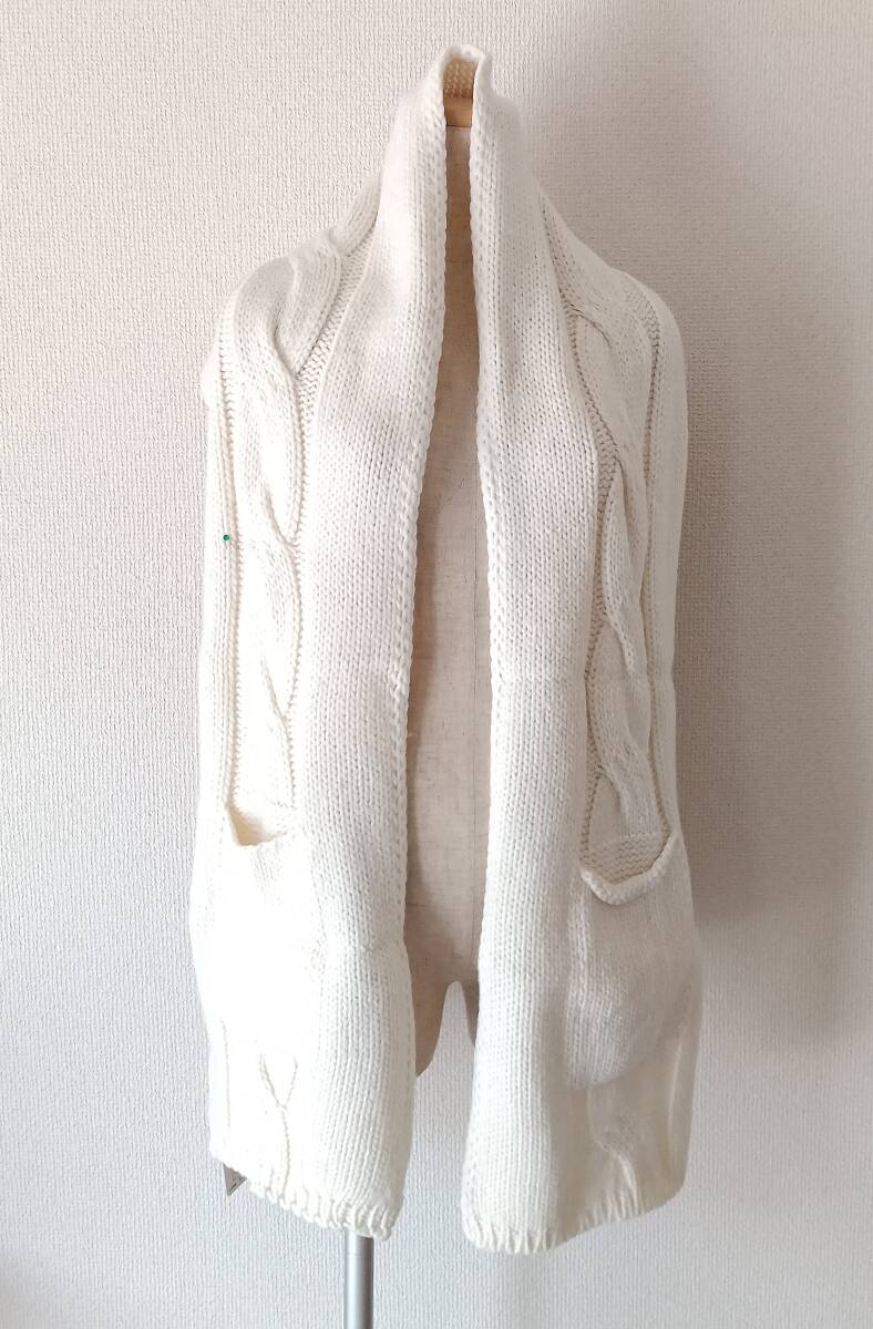 F70B 【新品7,800円】トルコ発 ONTEKS ストール マフラー ショール ポケット付き 巻物 ホワイト 白色 ケーブル編みニット