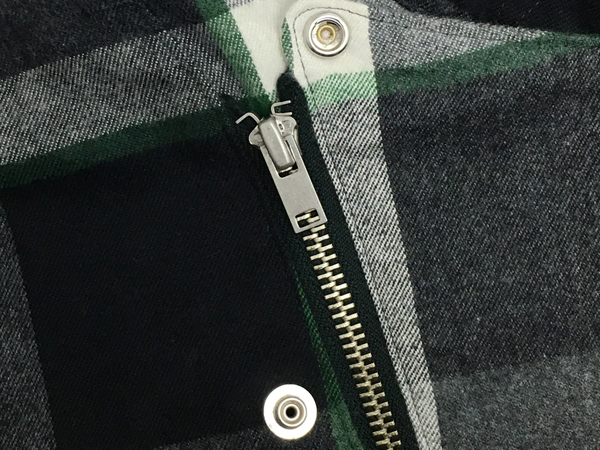 ビンテージウエアに見られるオールドテイストなファスナーは特注で製作。