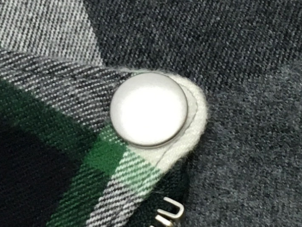 艶消しのスナップボタンも、ファスナーの雰囲気に合わせて別注。