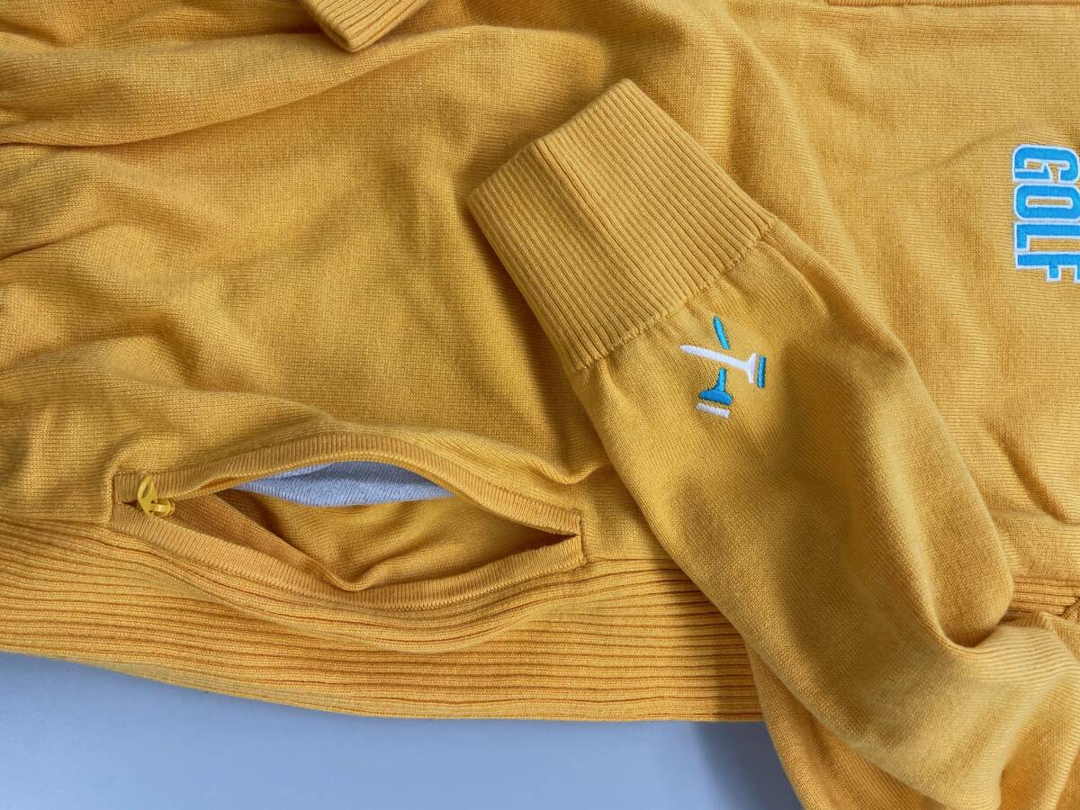 ビームスゴルフの映えるイエローニットのエアシャット・セーターです。