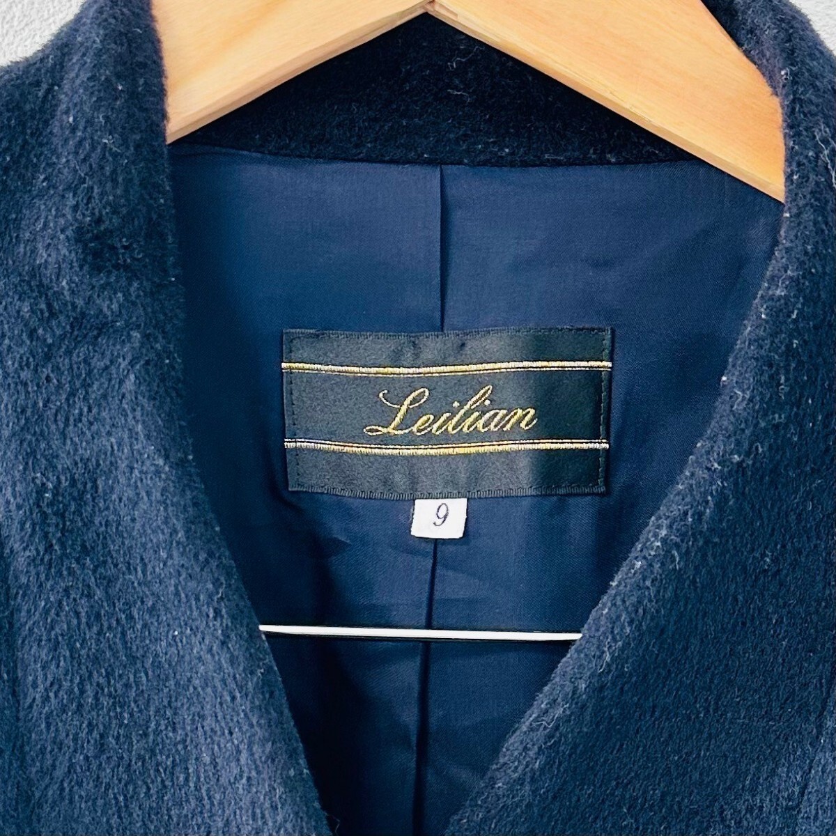 F9960iL 日本製 Leilian レリアン サイズ9 (M位) ウールコート 毛100% カシミヤ混 ロングコート ブラック 黒 レディース エレガント