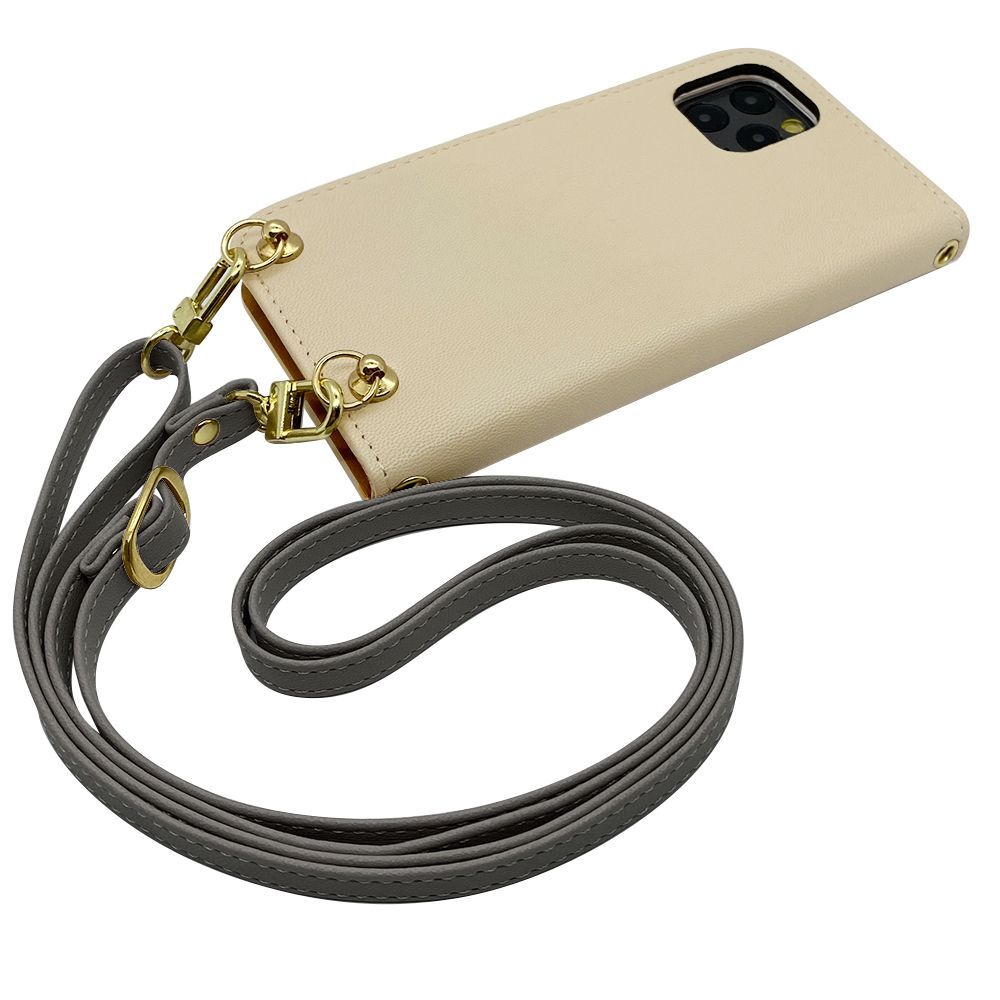 Galaxy A54 5G SC-53D SCG21 スマホショルダー(手帳クリーム×ストラップ:アッシュグレー)カバー 手帳 くすみカラー