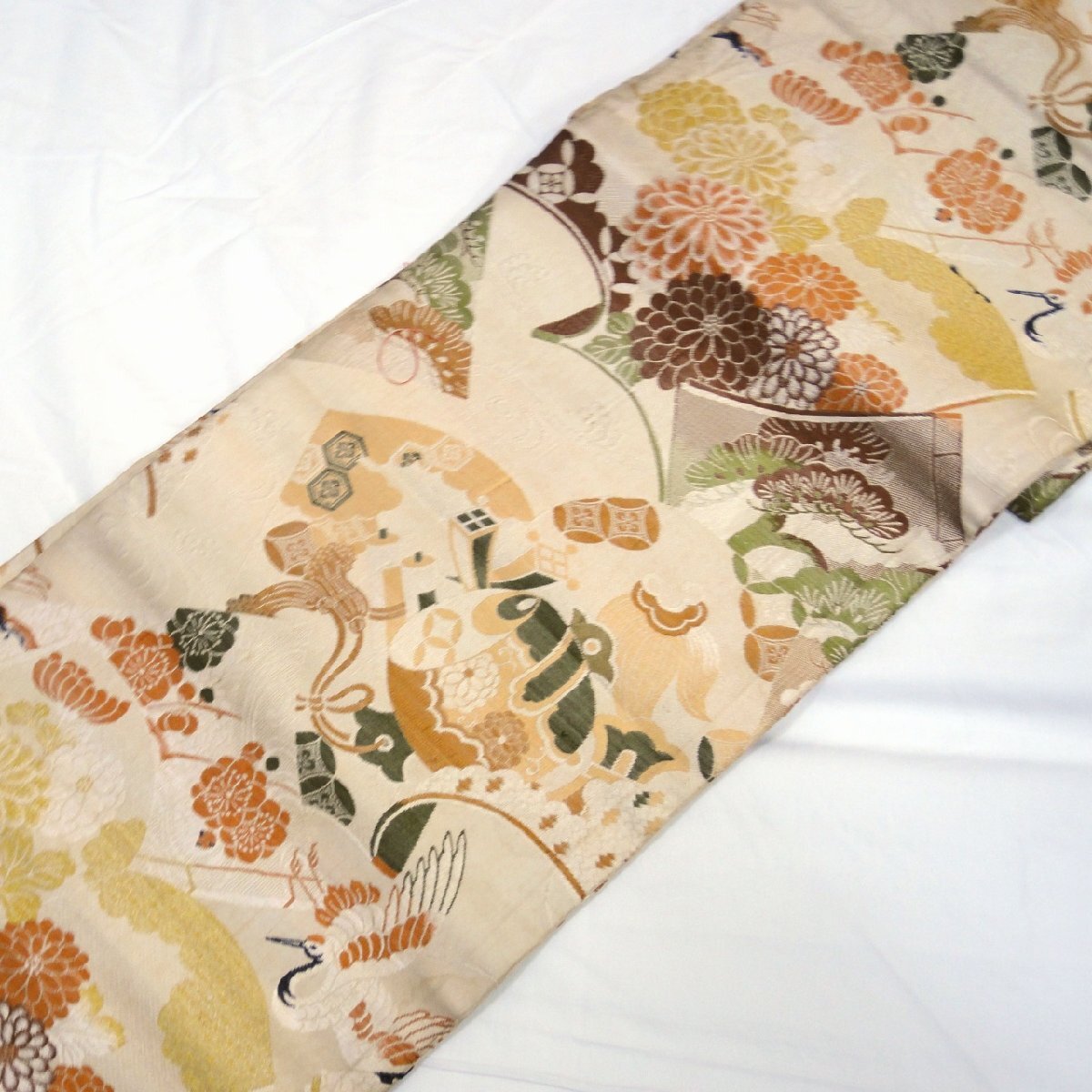 帯幅:約32㎝、帯長:約382㎝、状態ランク:D 商品は画像に写っているものが全てです。全体的に経年劣化が見受けられます。その他状態は画像をご確認ください。