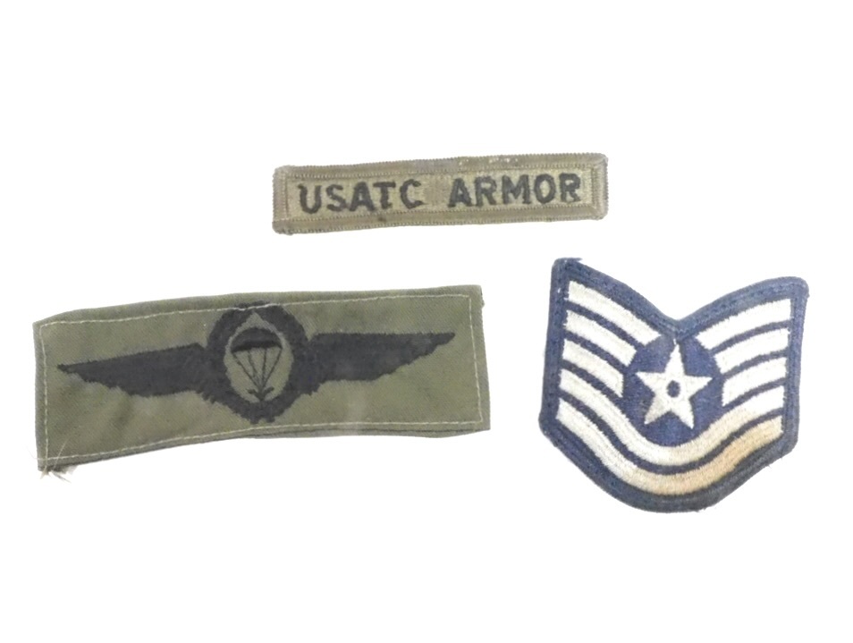 ビンテージ ミリタリー 階級章ワッペン3点セット「アメリカ空軍技術軍曹ランク」「ドイツ連邦軍パラトルーパー章」1960年代SMN604