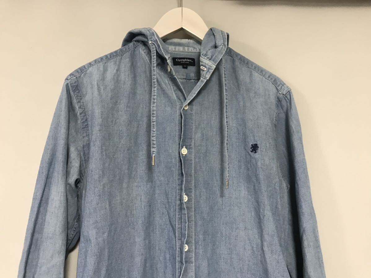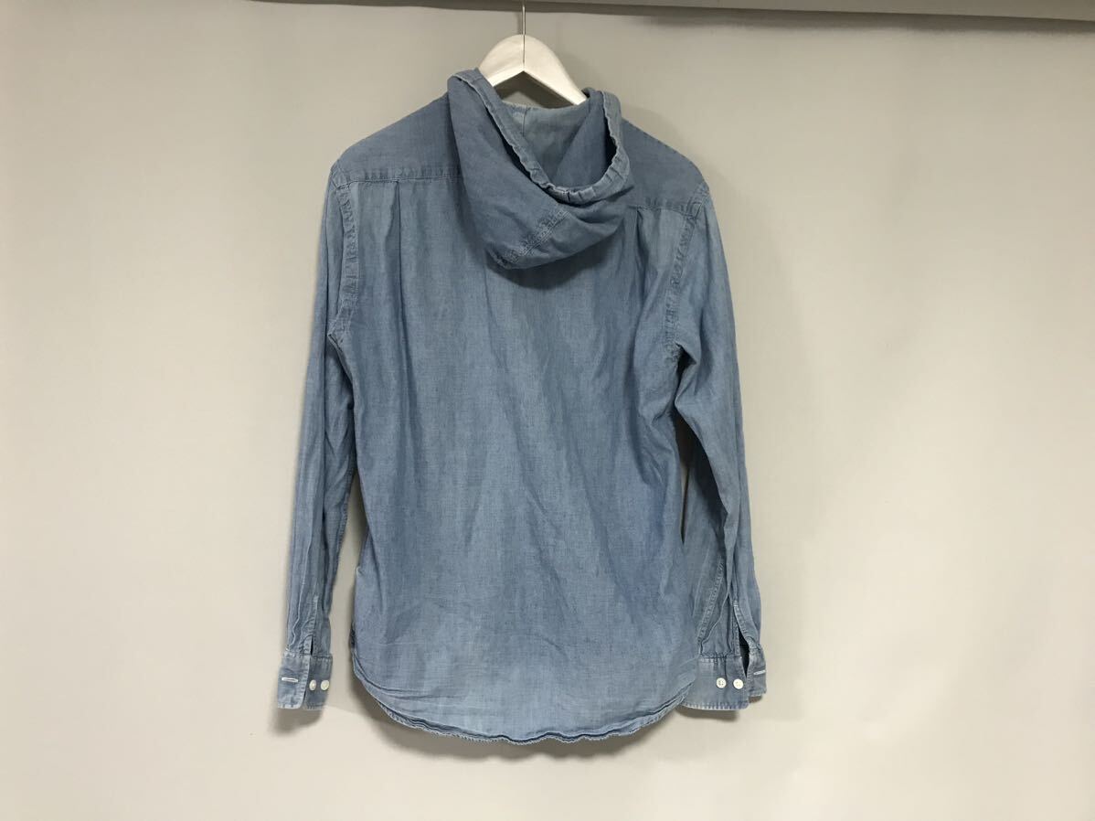 商品名:本物ジムフレックスGymphlexコットンワークミリタリーデニムシャンブレー長袖シャツパーカーサーフビジネススーツメンズ青ブルーL日本製