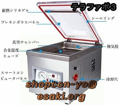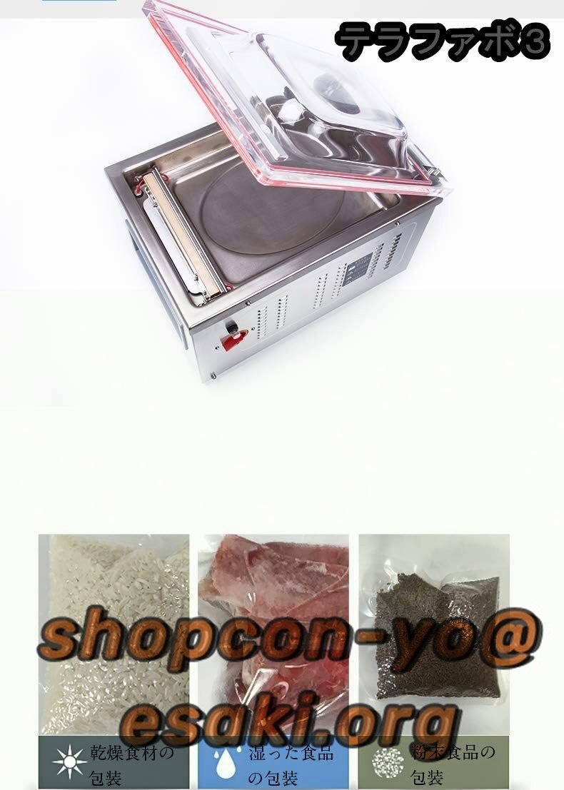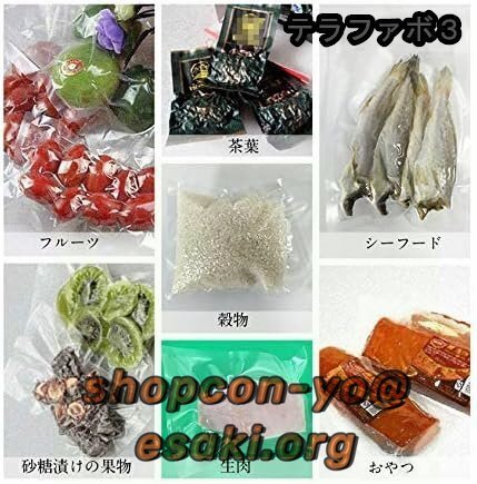 【特徴】:22inHGの強い真空吸引力、広い応用範囲、乾燥食材と湿った食品と粉末食品の3種類のシール機能、半真空シールでき、一度に複数の袋をシールすることができる、高効率、安全保護、ワンボタンシール、操作簡単