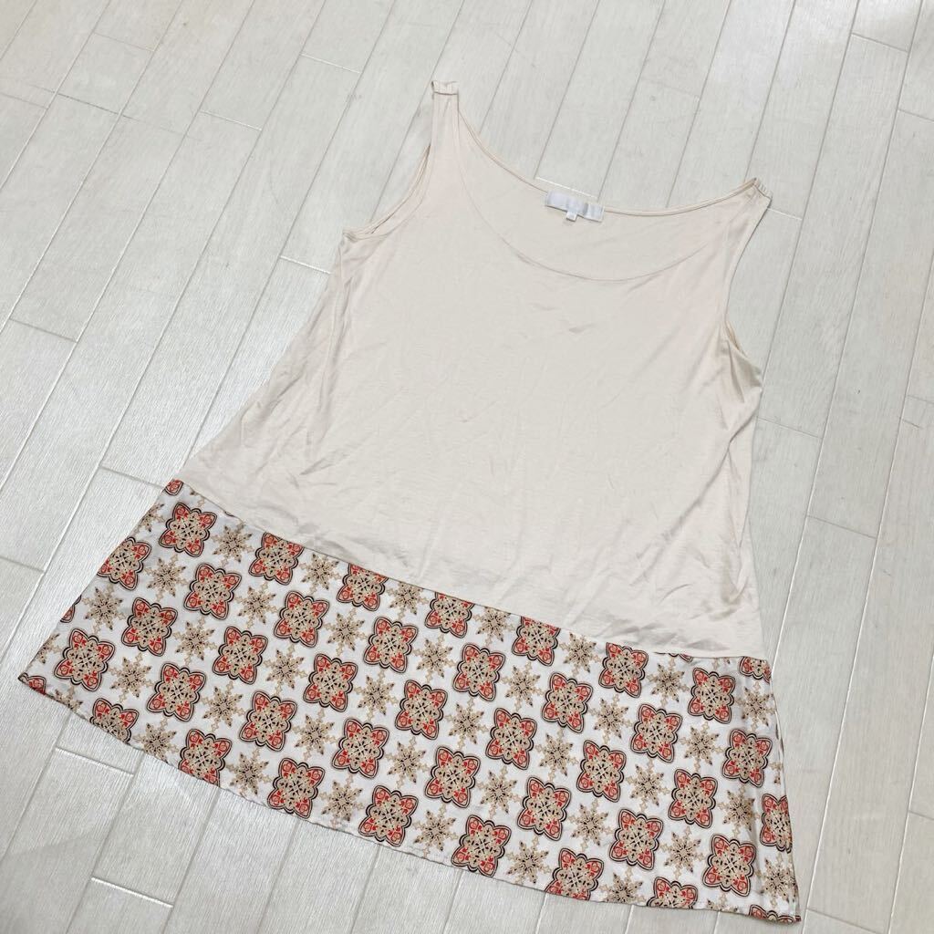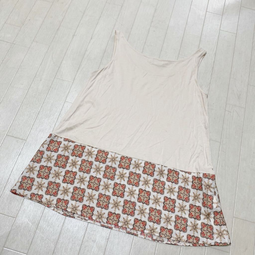 3919☆ 自由区 ジユウク トップス ノースリーブカットソー カジュアル レディース 38 ベージュ 柄