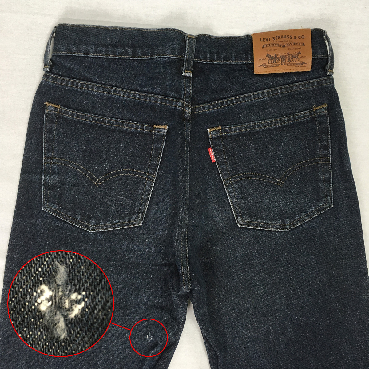 背面左太もも裏に一箇所ダメージがあります。