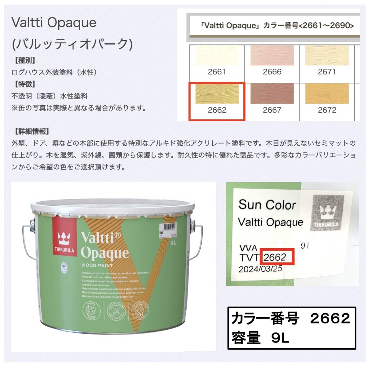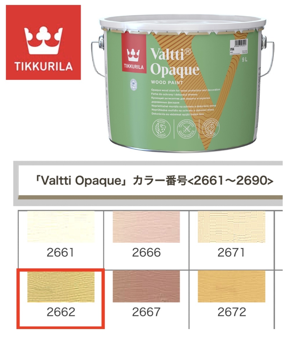 ◆ 新品、送料無料 ◆ 不透明水性木用塗料 TIKKURILA Valtti Opaque 9L 色番号:TVT-2662 2024/3/25製造