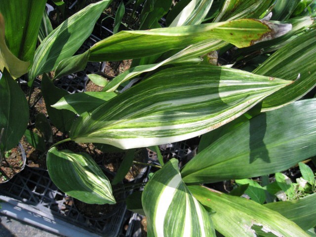 斑入りハランは鑑賞用途にも使われます。斑の入りかたは個体差があり、まばらです。
