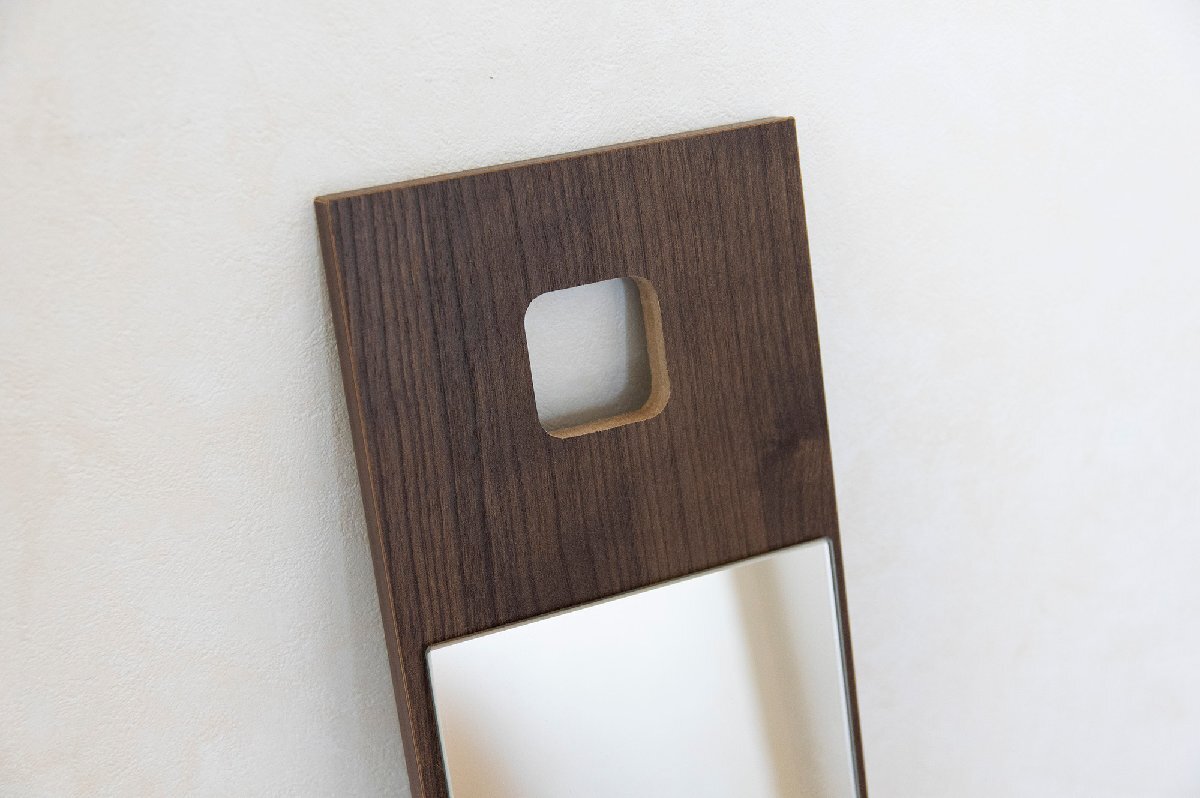 スリム&軽量な吊り下げスリムミラー『Meria(メリア)』。上部の穴をポールに引っかければ、すぐに使える姿見に。