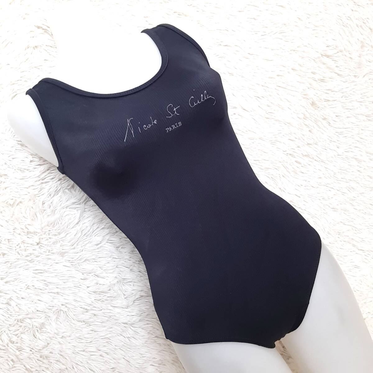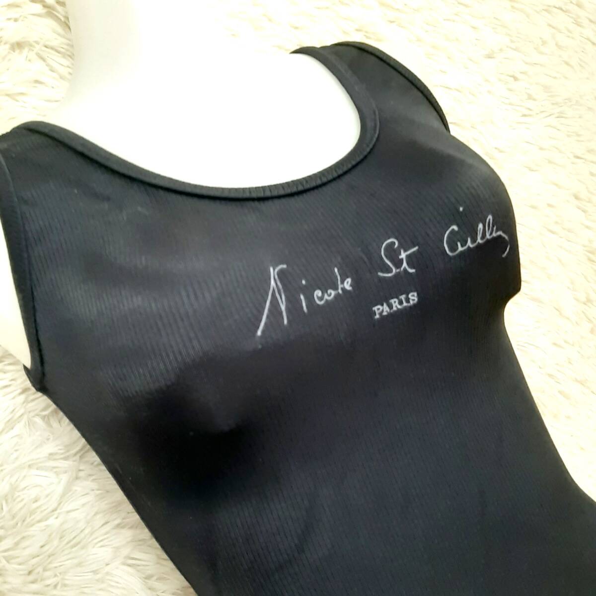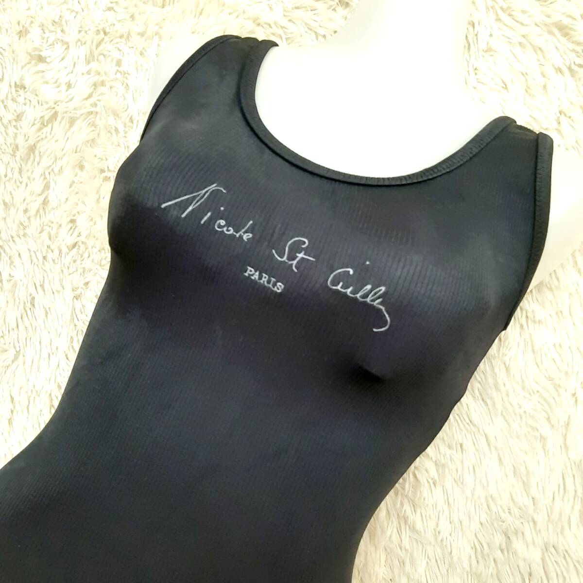 匿名配送 美品 厚手 ニコル Nicole St Gilles 光沢 背中リボン ワンピース 水着 ブラック 黒 日本製 M X