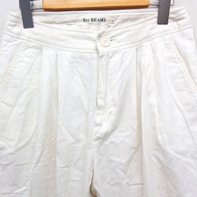 レイビームス Ray Beams タック テーパードパンツ アンクル丈 無地 綿混 麻混 0 ホワイト 白 /FT3 レディース