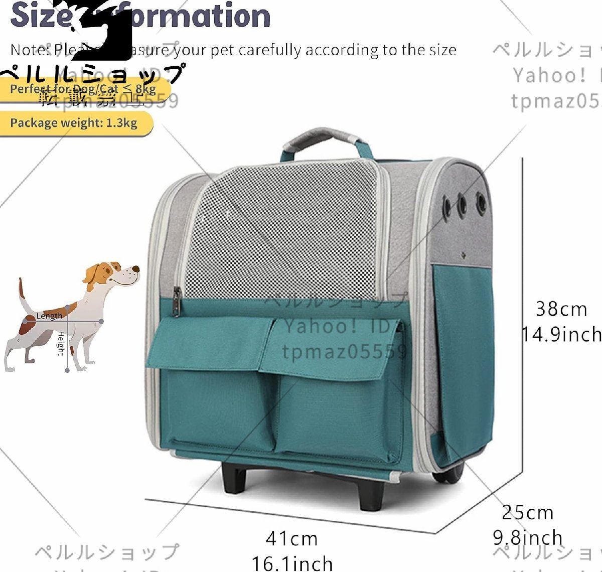 寸法: 41x25x38cm/16.1x9.8x14.9インチ。