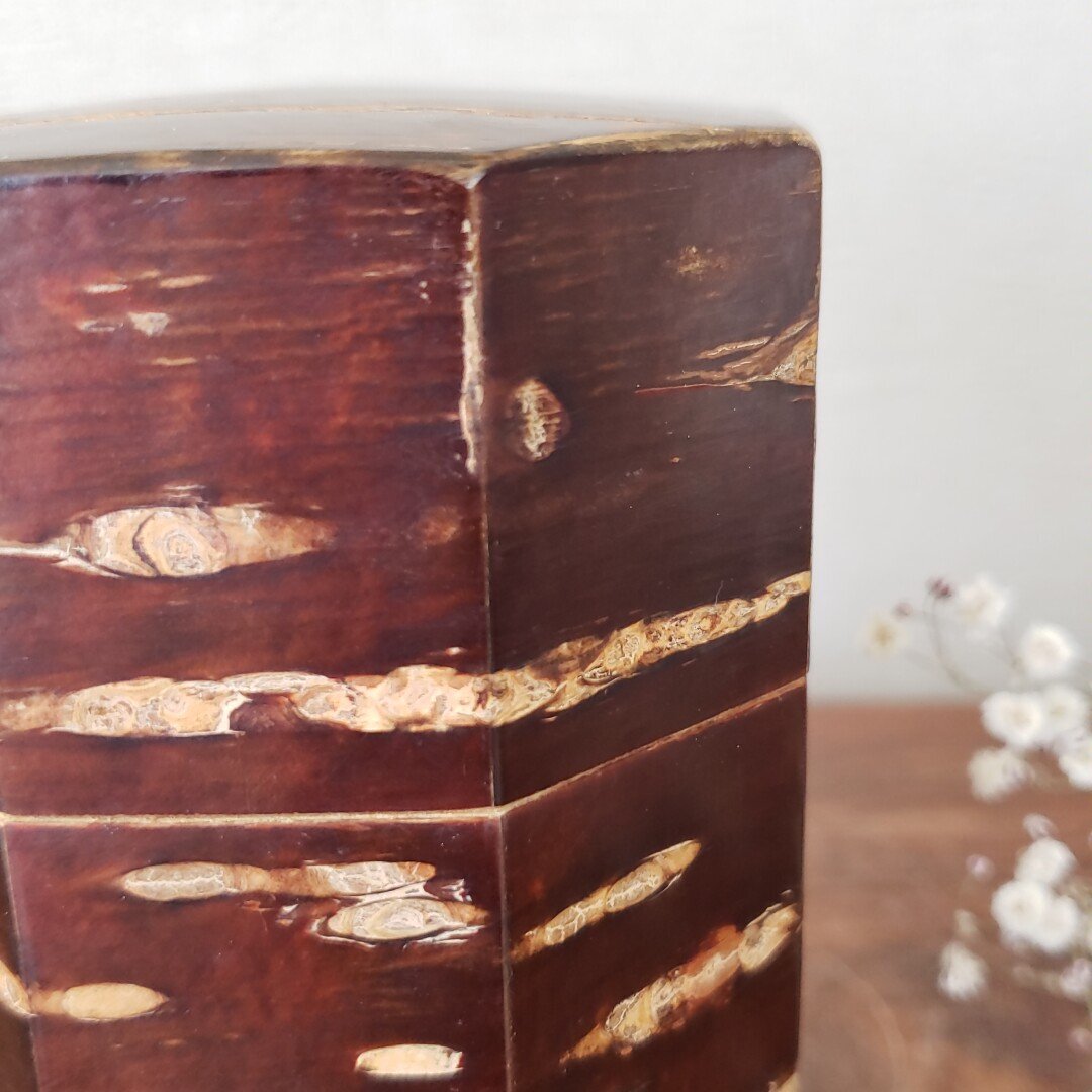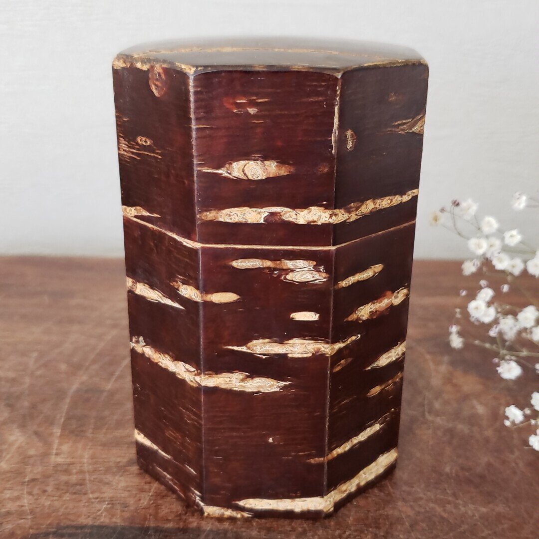 | 商品名 | 桜皮細工 御茶筒 12角茶筒 木工芸 さくら サクラ 煎茶道具 茶道具 茶葉入れ 時代物 古道具 古民具 茶室 和室 | |||||||||||||||||||||||||