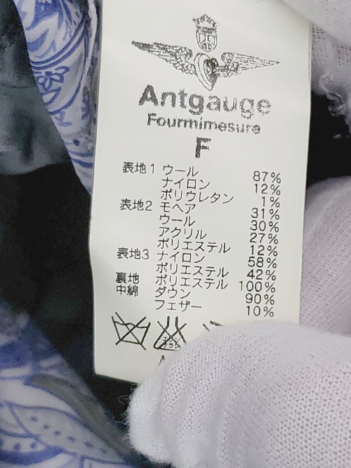 ◇ Antgauge アントゲージ ジップアップ ウール混 異素材 カジュアル 長袖 ダウンジャケット サイズF グレー レディース P
