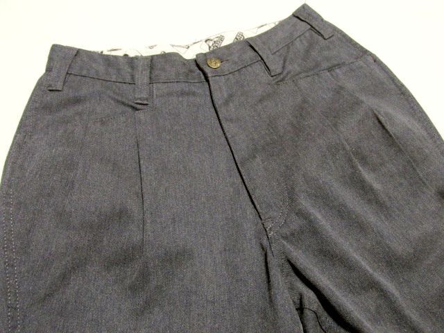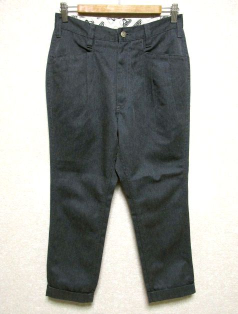 ・ジッパーフライ ・ツータック ・裾ダブル ・背面左上部にロゴパッチ付き |
