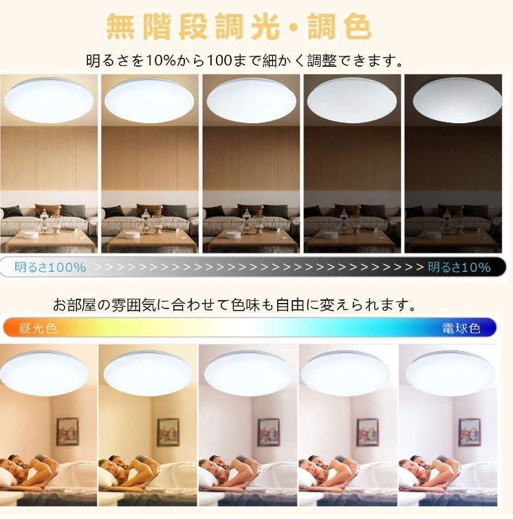 【無段階調光・調色】専用リモコンで「明るい」「暗い」ボタンを長押して色温度が10%から100%まで連続明るさを調整でき、「寒色」「暖色」ボタンを長押して色温度が2700Kから7000Kまで(昼光色−昼白色−電球色)連続光の色を調整できます。壁のスイッチを素早くオンとオフにすることで、3つの光の色を切り替えることができます。2つの操作方法が並立しており、ニーズに応じて異なる場所で使用することができ、コスパが良いです。
