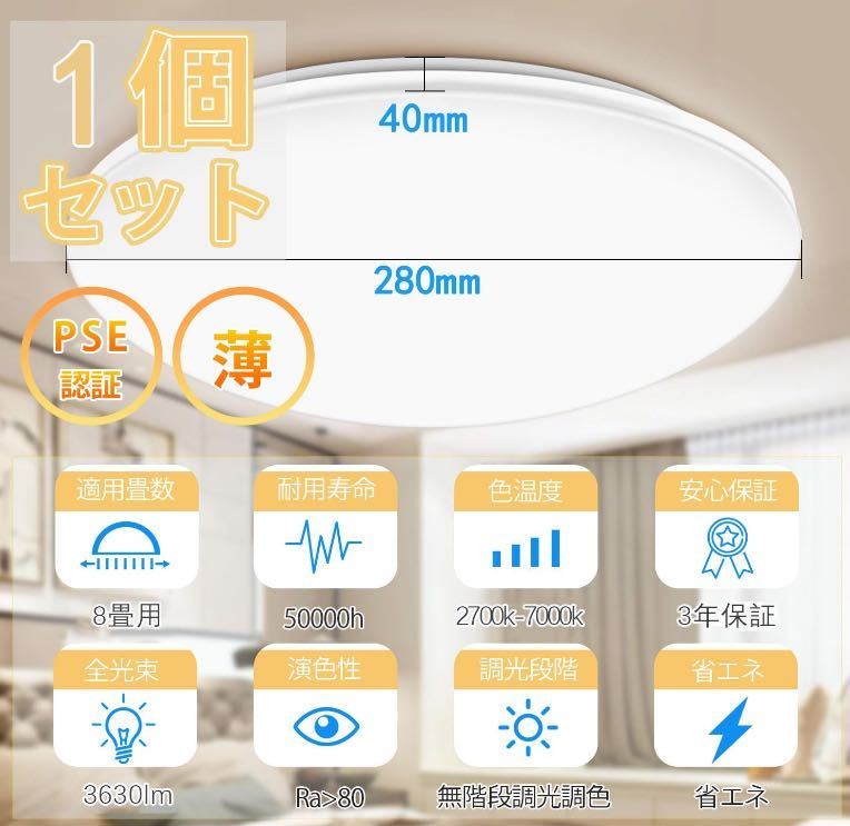 【薄型、小型設計&設置簡単】薄くてすっきりコンパクト、シンプルなデザインでどんな部屋にも最適なLEDシーリングライトです。圧迫感のない空間を作りましょう。図文版の製品説明書を丁寧に装備しており、工事不要、現在使用している照明器具から簡単に交換することができます。女性も操作が楽だと思います。インストールに困ったことがあったら、いつでも連絡してください。
