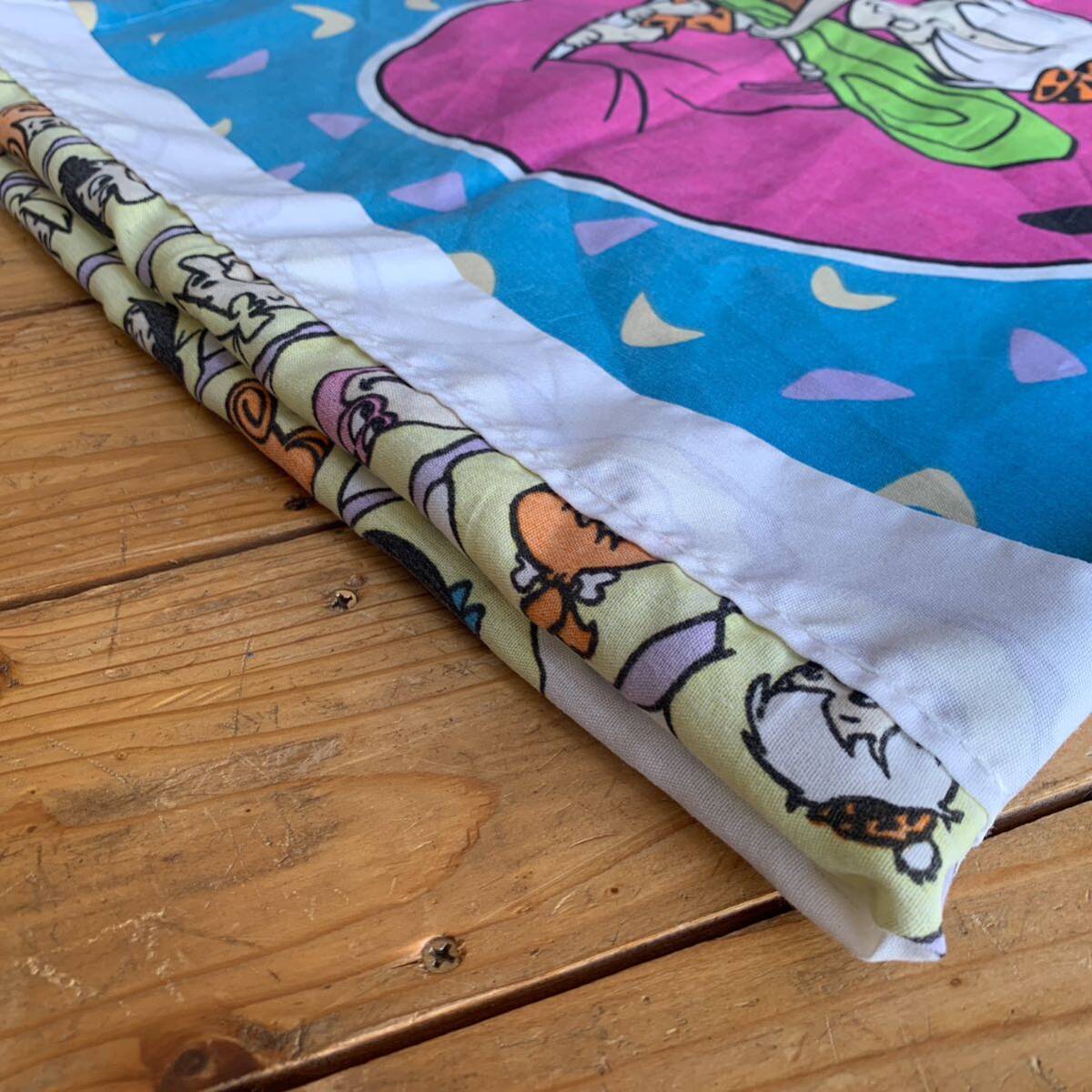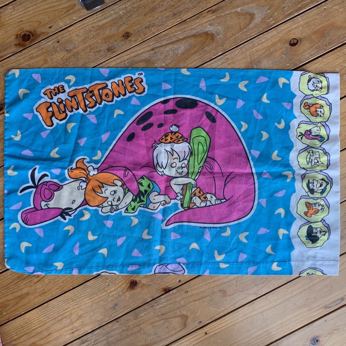 アメリカで購入したセカンドハンド(古着)の、フリントストーンの枕カバーです。(袋状で両面にプリントがあるものです)