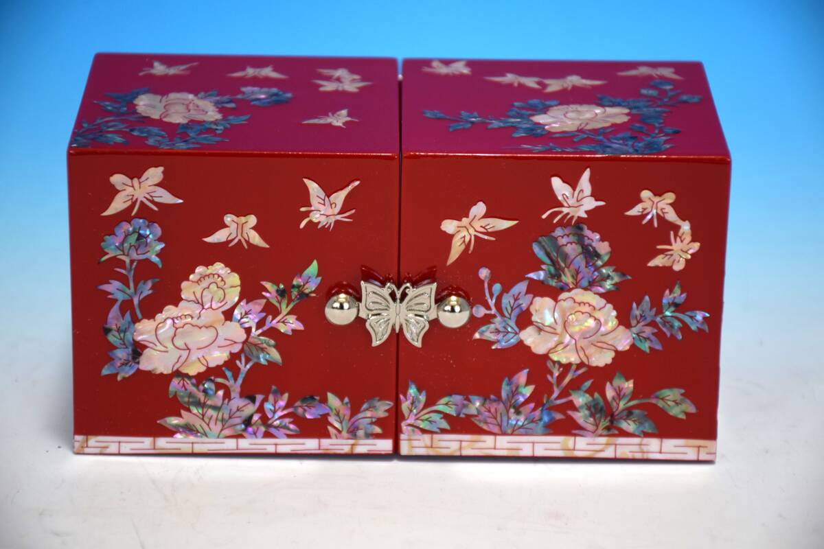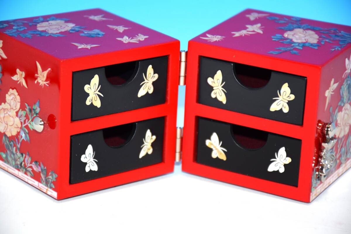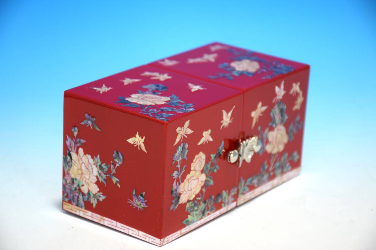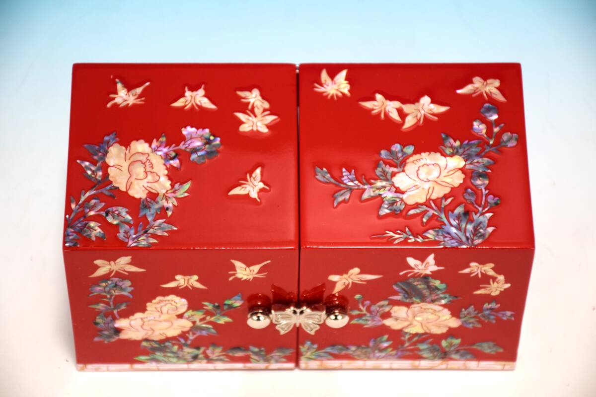 ◆■■韓国 伝統工芸■螺鈿細工 カラフルミニ双子宝石箱■レッド■■◆