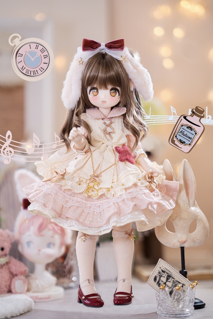 木茶動物園様製 1/4ドールサイズ共通(MDD/KUMAKO/MSD/SDMサイズ) 「砂糖の国のアリス」 【垂れ耳】ピンク-Pink ドール服