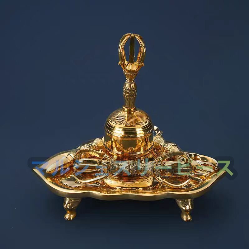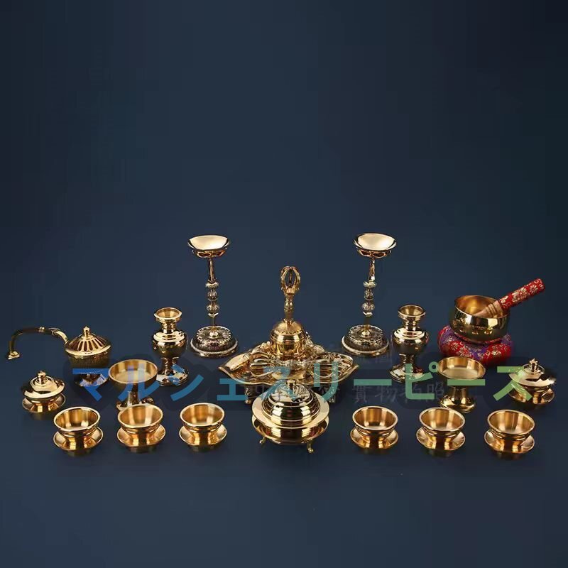 「密教法具 寺院用仏具」極上品 前具(一面器) 23点セット 金剛杵/金剛鈴/金剛盤/火舎香炉/六器/華瓶/仏器 真鍮製 磨き仕上げ 工芸品M