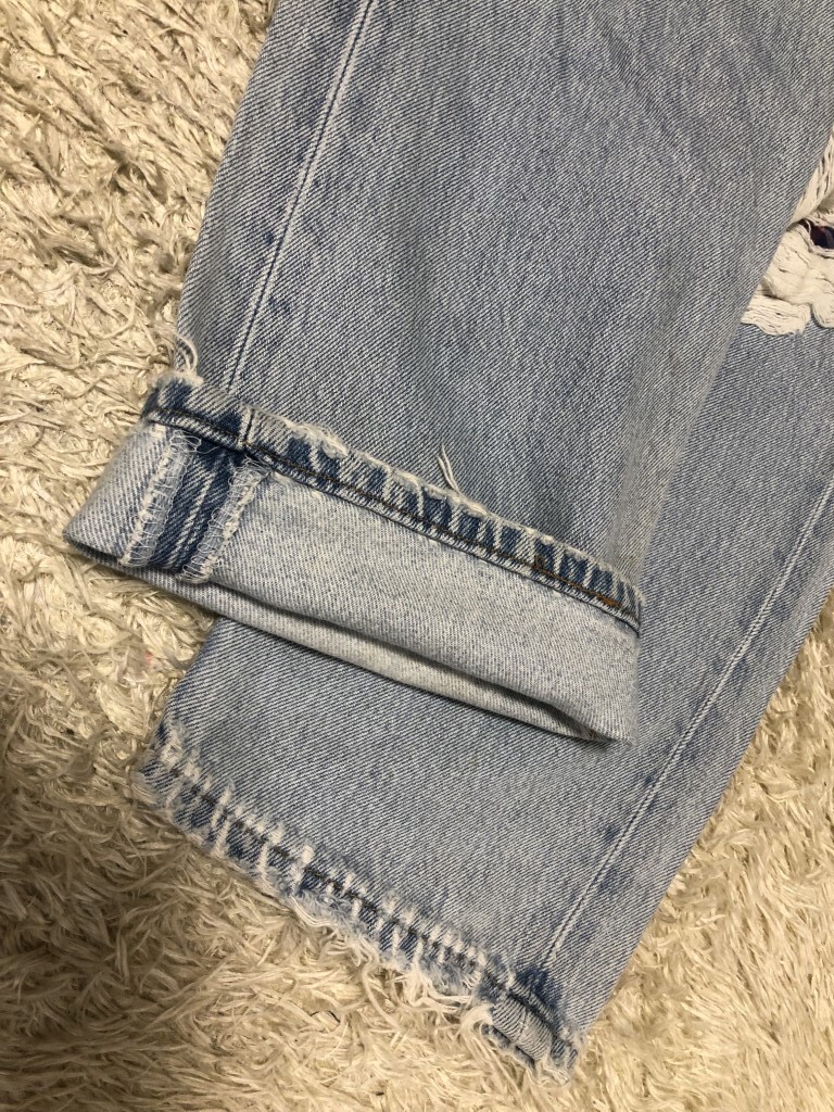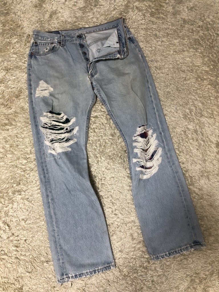 ダメージ加工に裏地にネル生地でリメイク加工を施してあります。