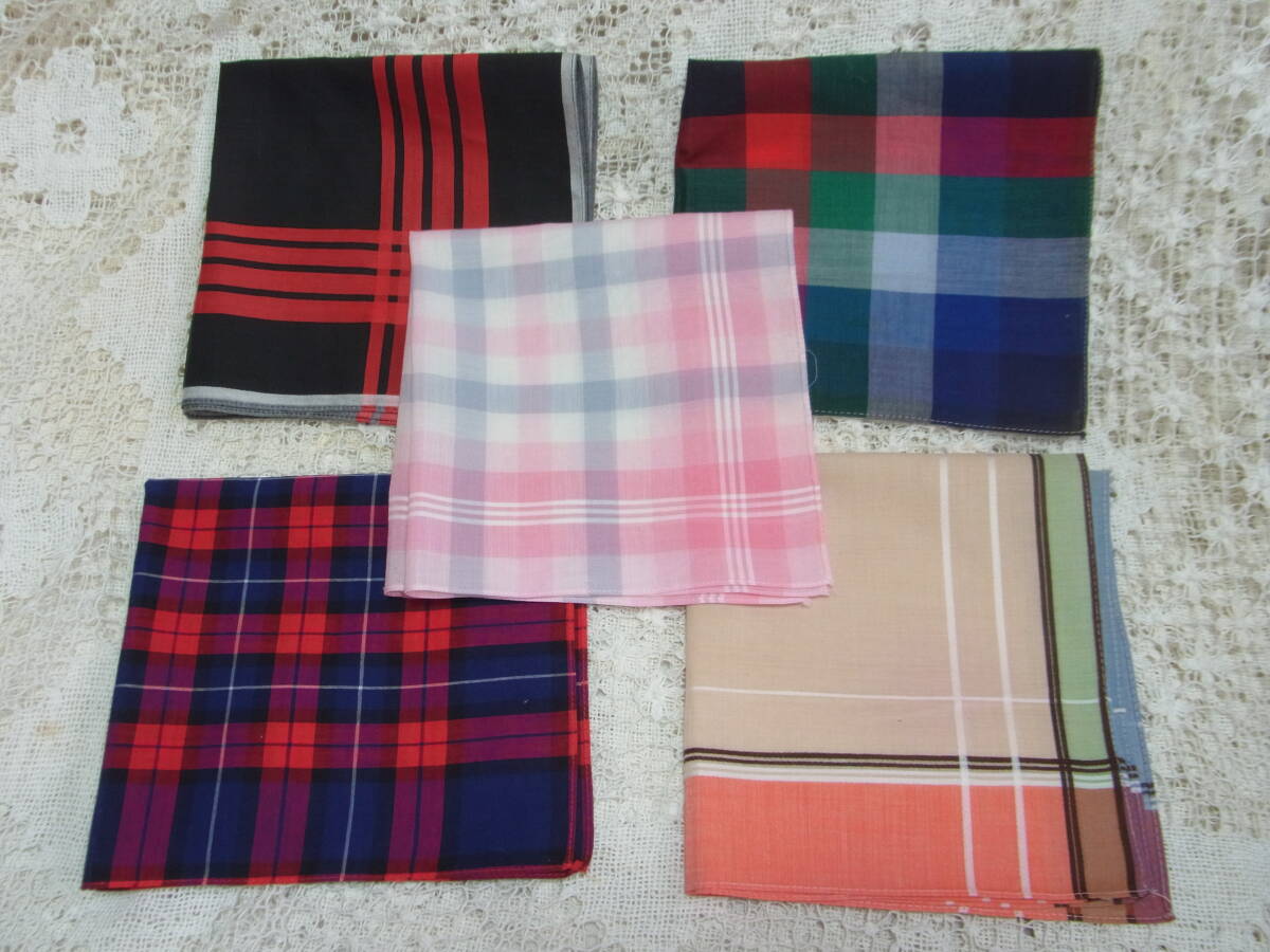 ハンカチ☆5枚③ 昭和レトロ1960年代 チェック格子 30㎝前後  人形服にも