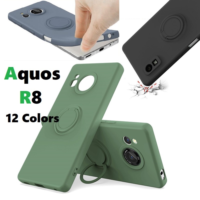 Aquos R8用 硬質シリコン ソフト リング付 バックカバー 保護ケース 衝撃吸収 落下防止 スタンド ストラップ付 |