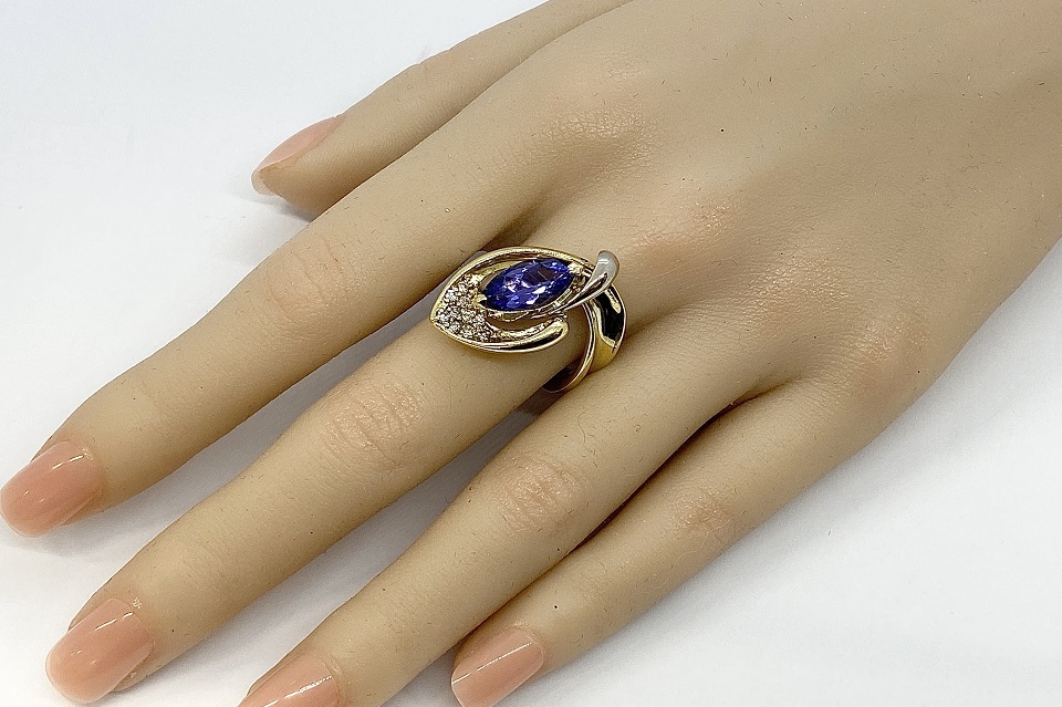 解説 | 高原の水芭蕉を思わせる、たおやかなカーブが優しく指を包みます。タンザとしては珍しいマーキスカットが見事に調和し、可憐な指元を演出してくれます。 |
