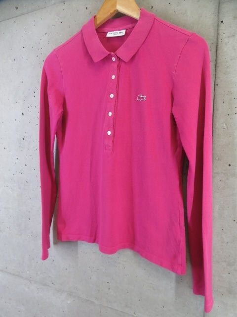 011m78◆日本製◆LACOSTE ラコステ 長袖ポロシャツ 38/ピンク系/ジャケット/コート/ゴルフ/レディース/女性/婦人