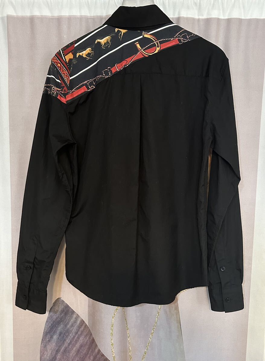 今シーズン柄をブラックボディに採用し、インラインとは異なり襟部分は黒単色にチェンジした。男らしくもブランドらしい遊びの効いたアイテムに仕上がっています。