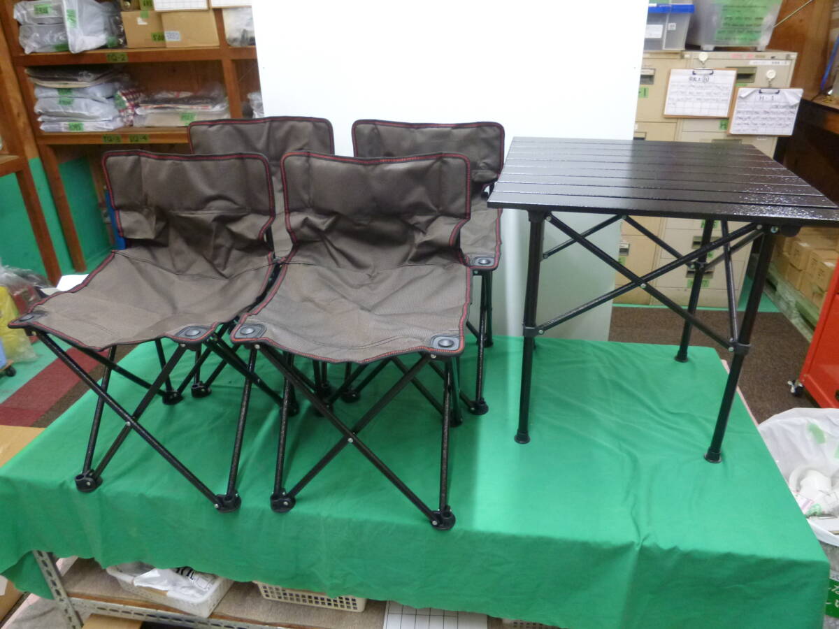 【7940】アウトドア用 折りたたみテーブル・チェア4客脚セット 収納袋付き 未使用品 長期保管品  です。