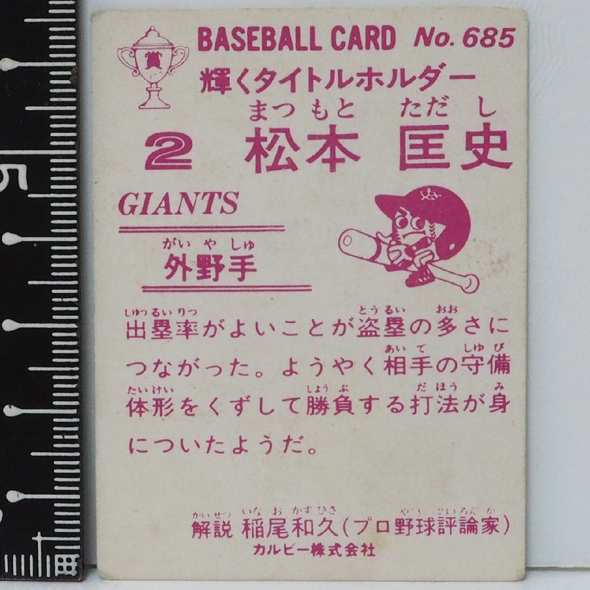 83年 カルビー プロ野球カード No.685【輝くタイトルホルダー 盗塁王 松本 匡史 読売ジャイアンツ巨人】昭和58年 1983年 当時物おまけ 食玩