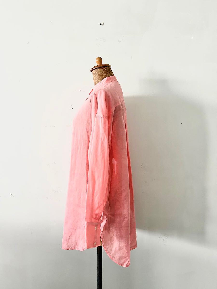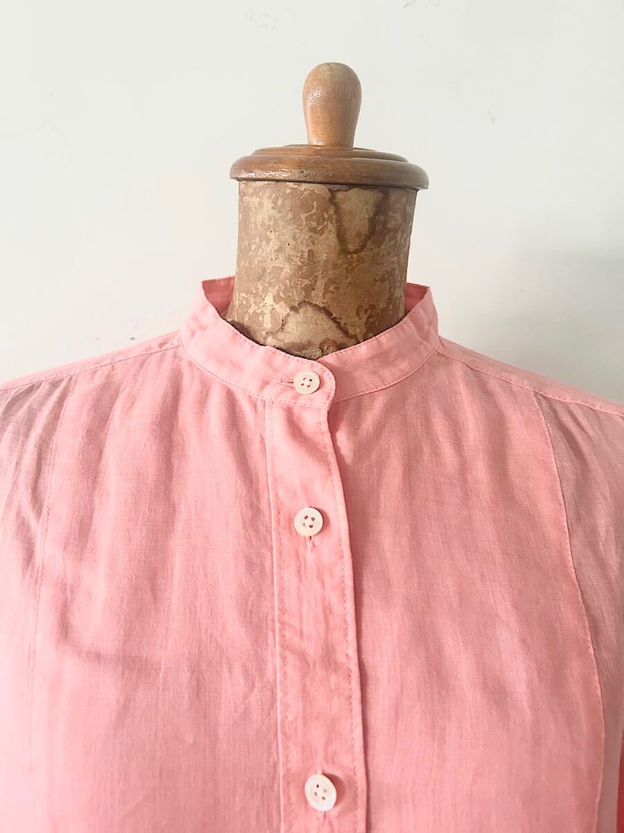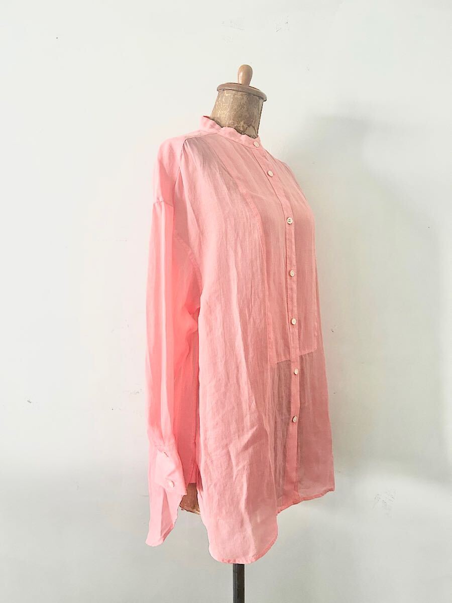 カラーはピンクで夏の定番素材、ラミーを使用したヨーク切り替えシャツです。