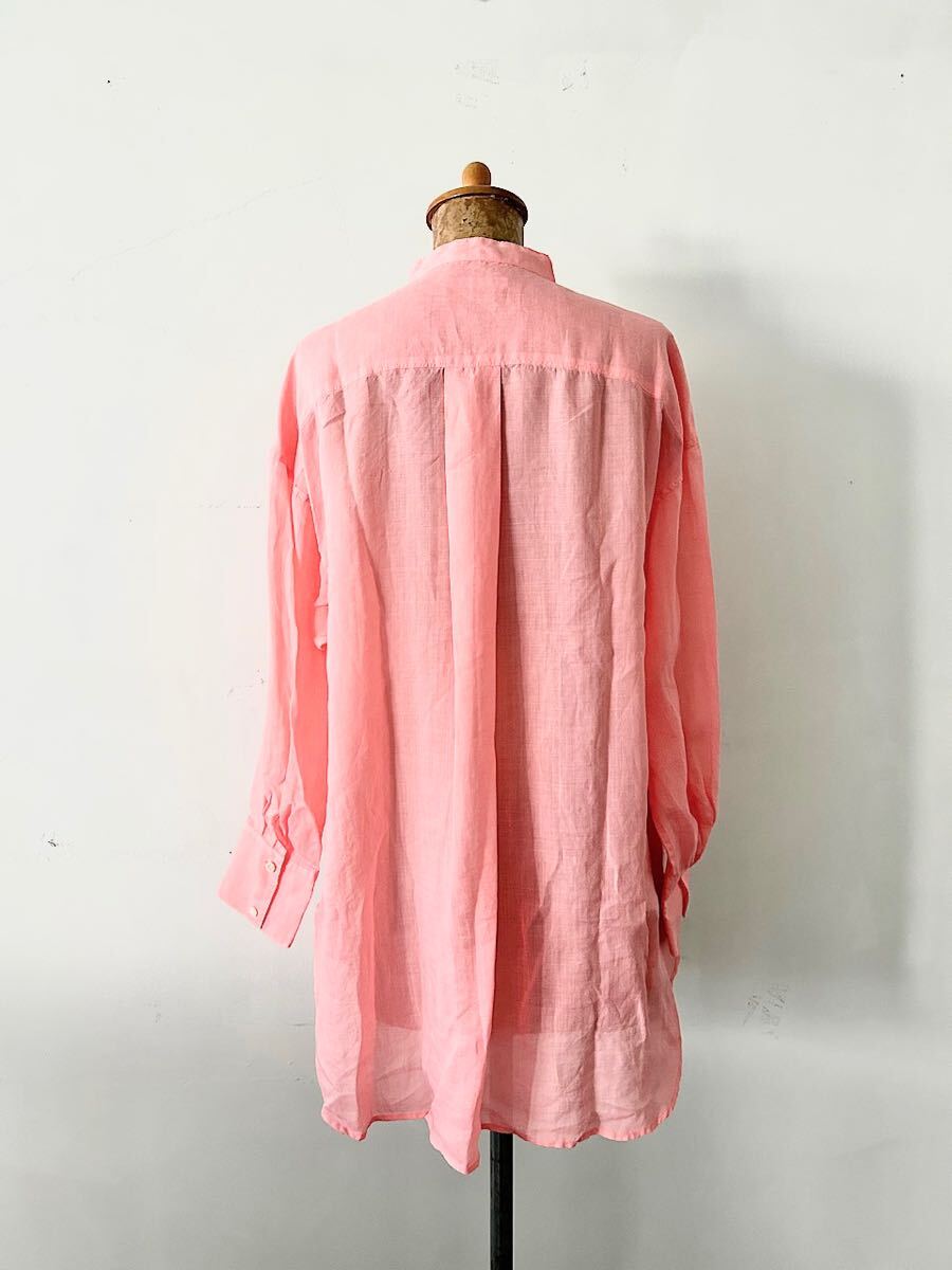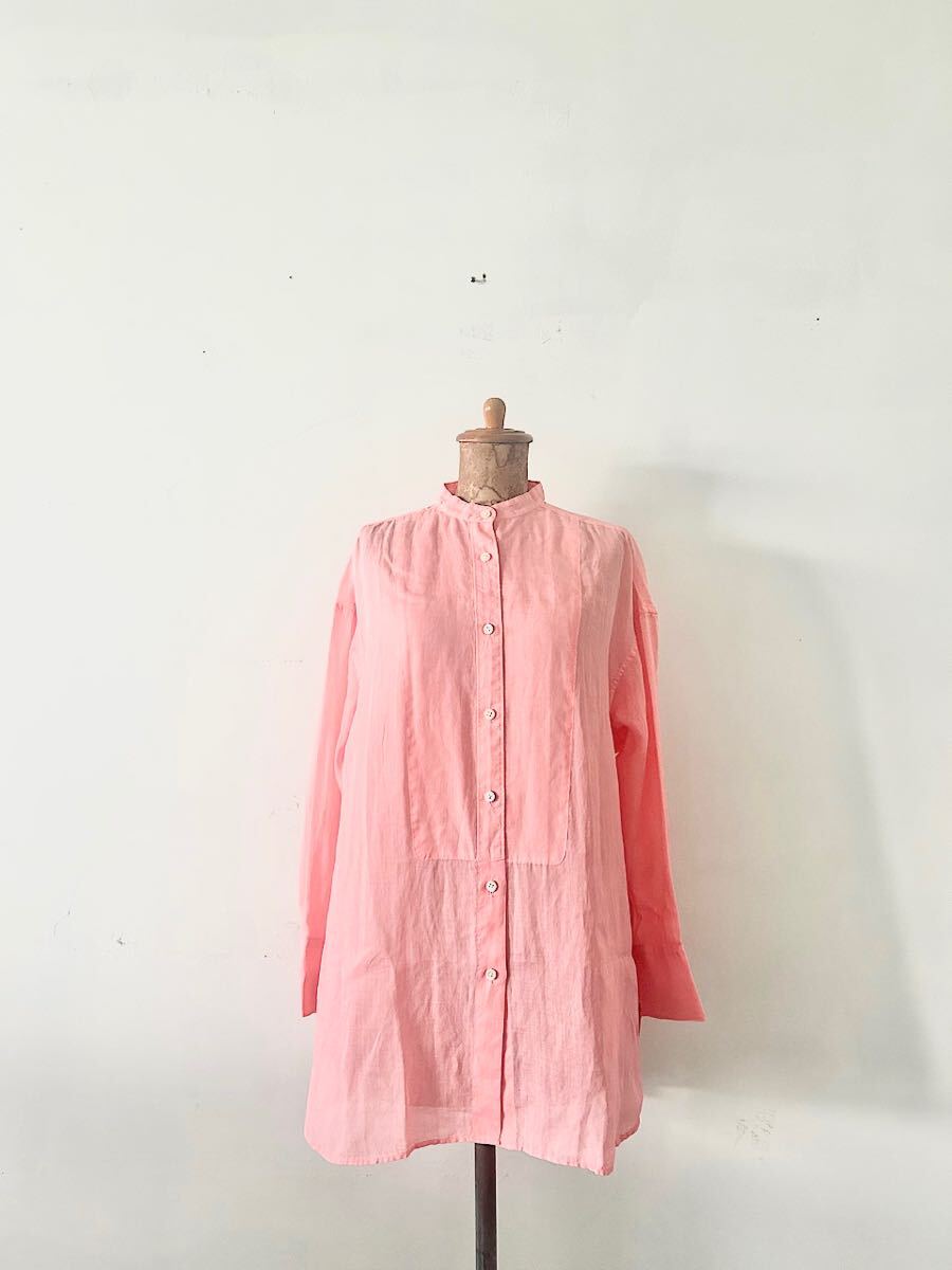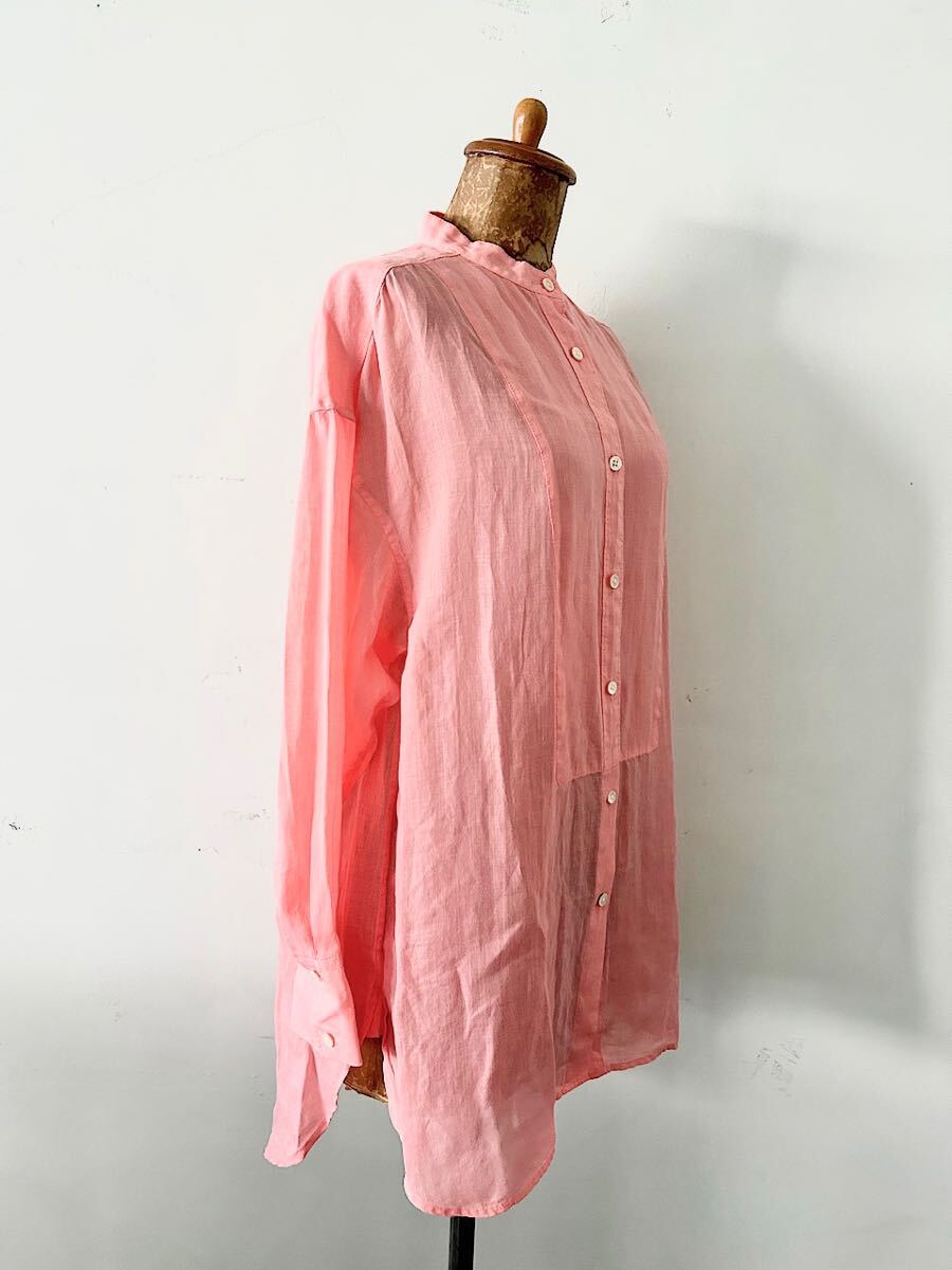カラーはピンクで夏の定番素材、ラミーを使用したヨーク切り替えシャツです。