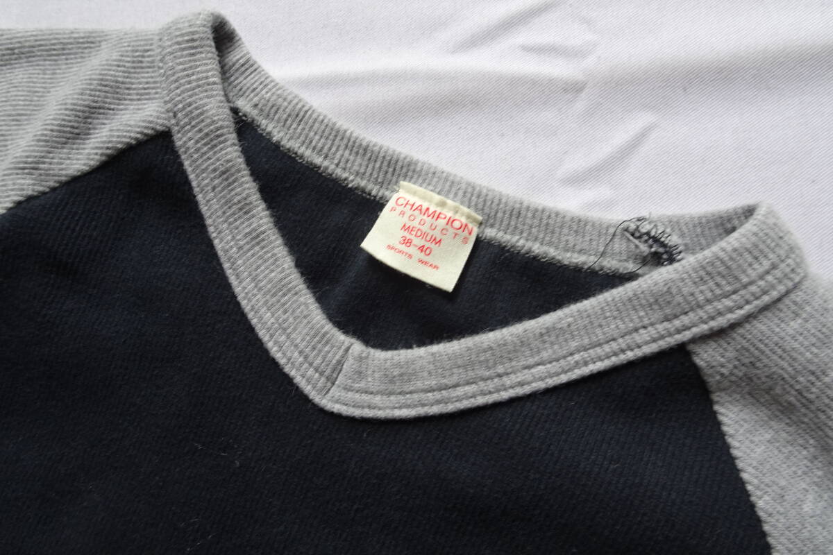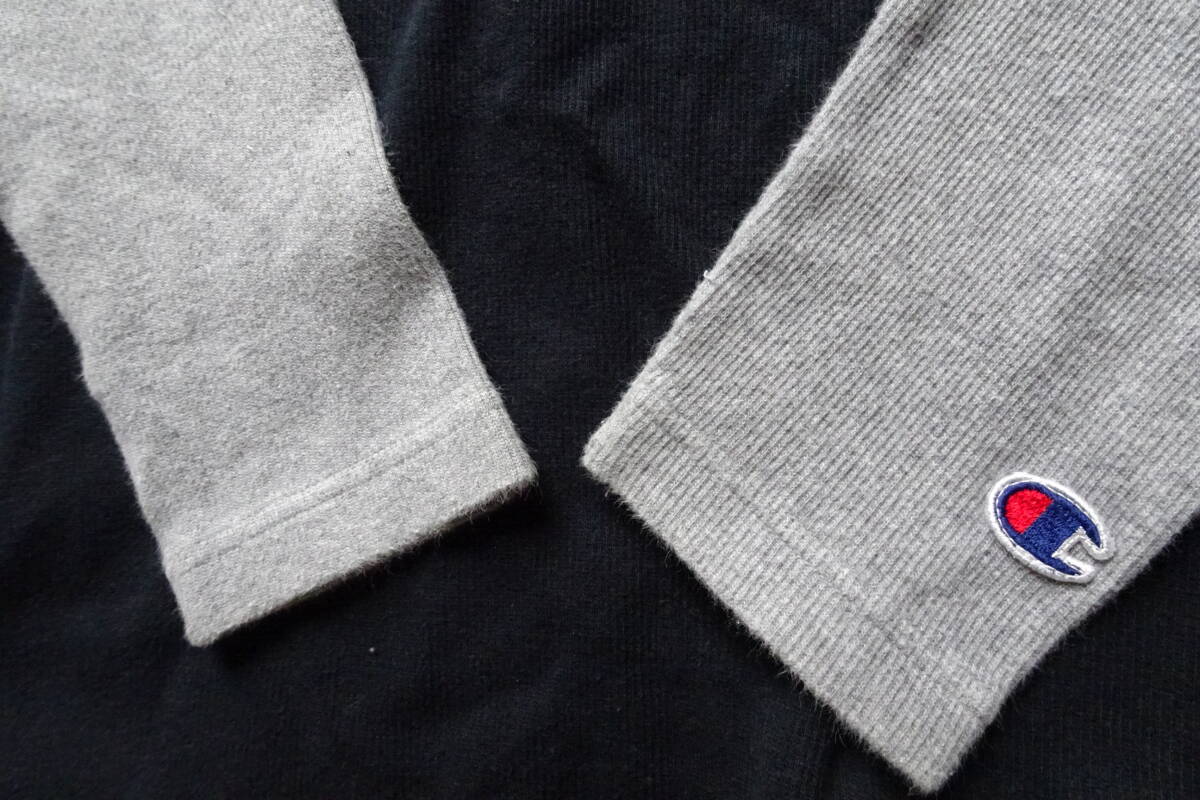 Champion/チャンピオン/長袖Tシャツ/カットソー/リブ素材/Vネック/身頃黒/袖グレー杢/フィット感/ブラック/サイズ38-40(5/13R)