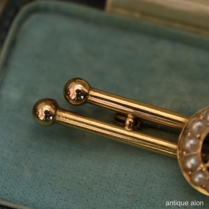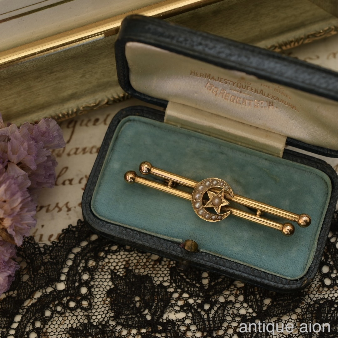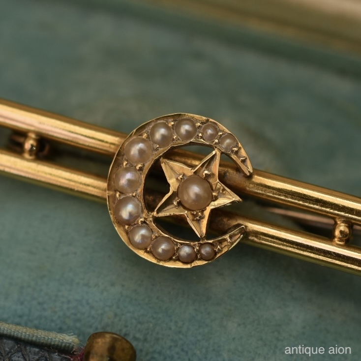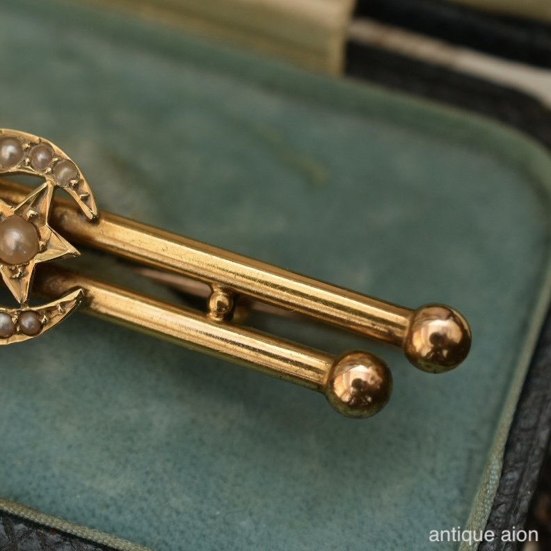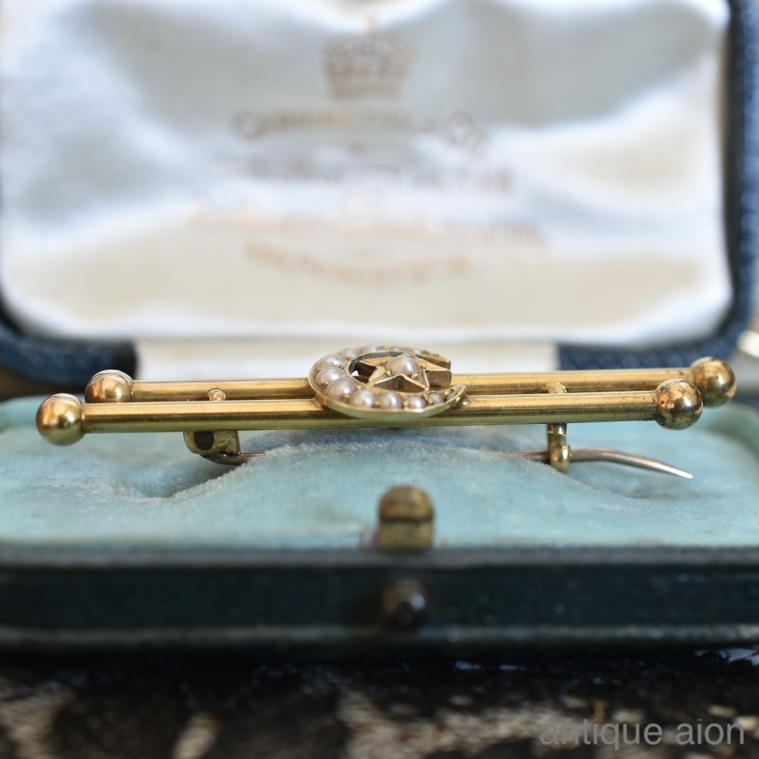 英国アンティーク 19世紀後期頃 ヴィクトリア朝時代 K15 天然シードパール クレセントムーンスターブローチ