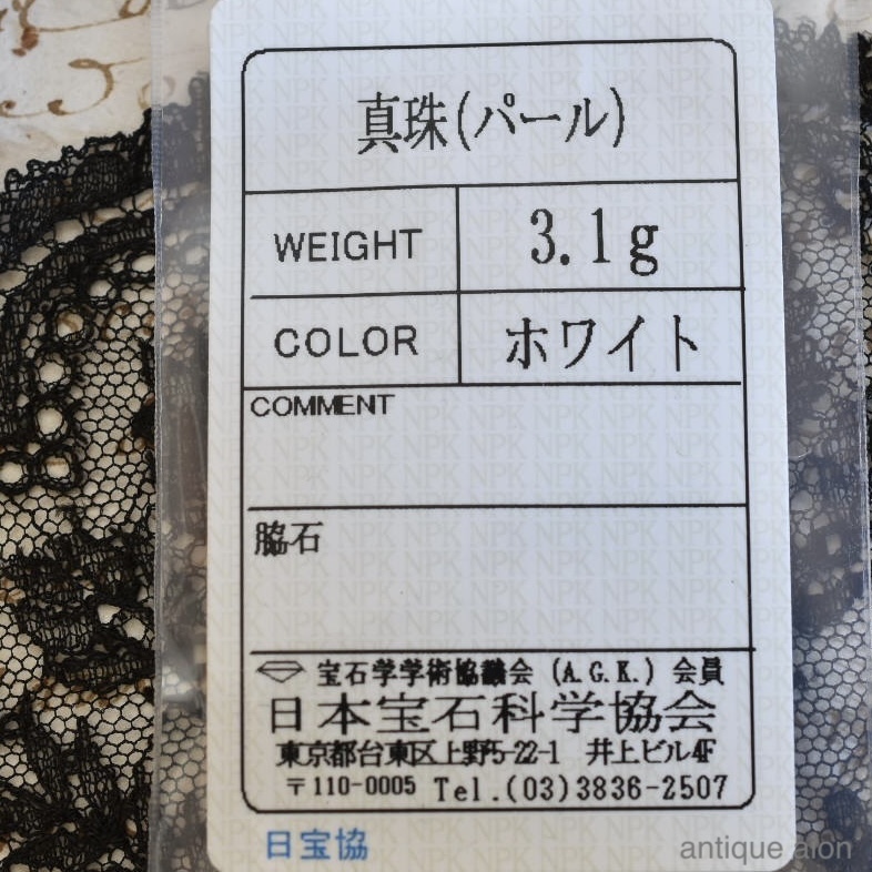 天然パールにつきましては、専門機関にて鑑別済みです。