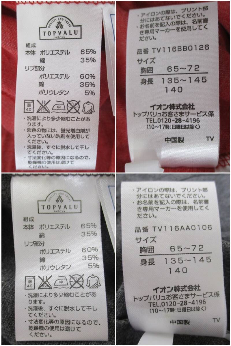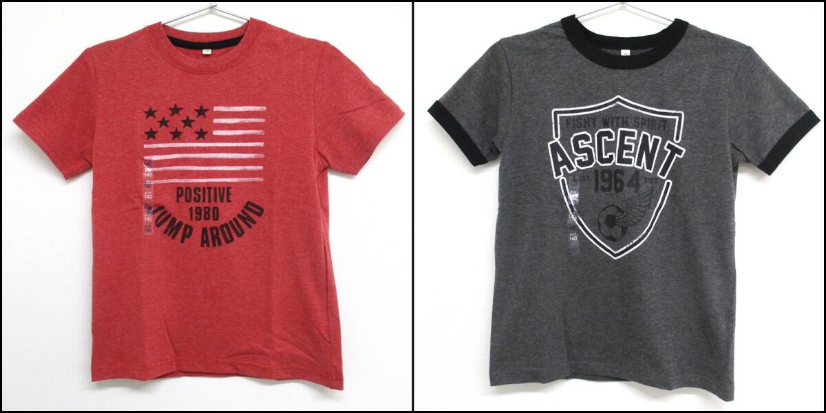 ★1067【送料無料 新品】2点セット まとめ売り TOPVALU トップバリュー イオン 半袖 Tシャツ 140 ジュニア 赤 グレー アメカジ プリント